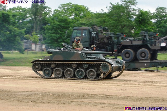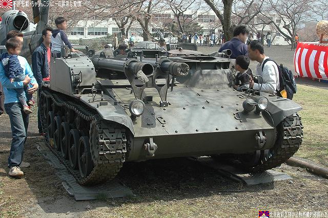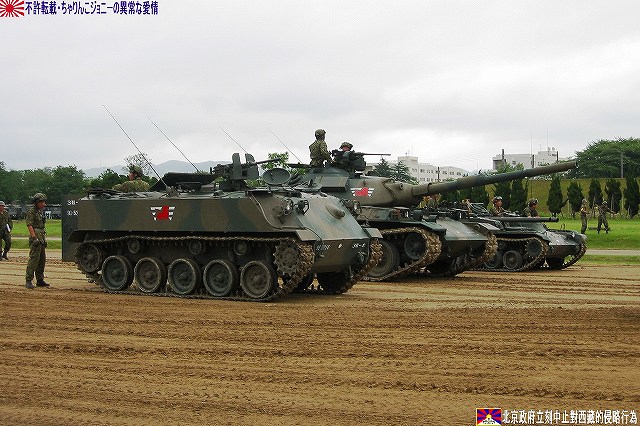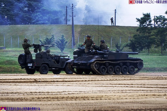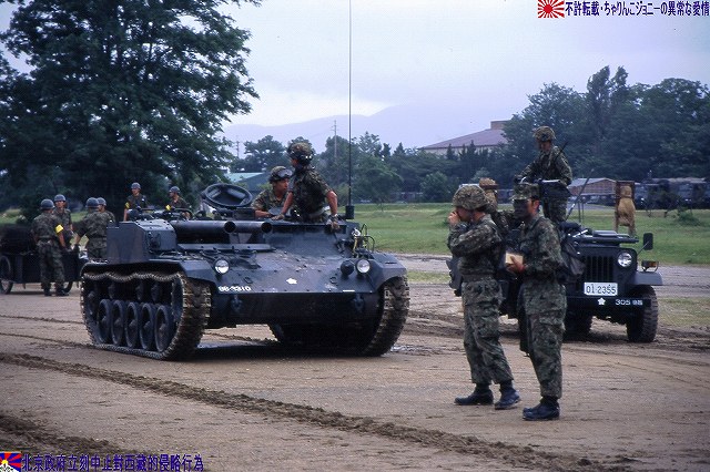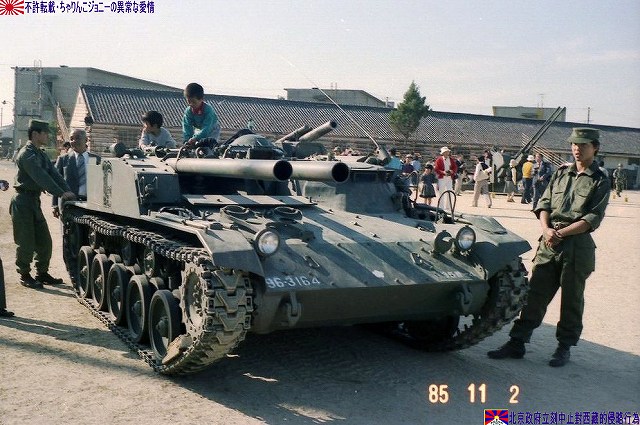 一部(つか殆ど?)写真が使いまわしなのはご勘弁を…(^。^;) まずは1985年の守山駐屯地祭で撮影した60式自走無反動砲。 (左)装備品展示に登場した60式自走無反動砲。 60式自走無反動砲は主に普通科連隊に配備されていて、本車はその表記より35普通科連隊所属車両だとわかる。 側面には「金シャチ」マークが描かれている。 (右)トラック(特大型トラック?)の荷台に乗せられた60式自走無反動砲。 表記によれは信太山駐屯地の37普通科連隊所属車両のよう。 この時は始めて見る90式戦車や89式装甲戦闘車などに気を取られ。また、ほぼ無尽蔵に撮れるデジカメなんて便利な物も存在しなかったので、60式自走無反動砲の写真は殆ど撮って無かったりします…スマン! 続いて2003年の大久保駐屯地祭。ワタシが現役の60式自走無反動砲を撮影したのはこのときが最後でした。 会場隅に停車していた60式自走無反動砲。…なのですが、レンズが汚れていたのに気付かず撮影してしまったので、お見苦しい写真なのはご勘弁。 表記が無いので所属は不明。 (左)大久保駐屯地祭では、模擬戦開始を前に登場する各装備を並べて紹介する。 背後の吹流しを見るに、この日は結構な強風が吹いていたよう。 (右)発進位置へと移動する60式自走無反動砲。乗員数は3名。 背後では81式架柱橋車が作業中。 主砲を放つ74式戦車の手前で無反動砲へ空砲装填中。 砲に装備されている12.7mmスポッティングライフルを発射し照準を確認した後、無反動砲を発射する。 砲を2門装備しているのは、初弾を外した場合すぐさま必殺の2発目を放つ為と言われている。いずれも前述のような無反動砲の特性に起因した運用法と言える。 無反動砲発射。 空砲ながら後方にも白煙が出ている。 (左)空砲発射後、移動する60式自走無反動砲。 発射ガスを後方に逃がす事により発射時の反動を抑える…と言う無反動砲故に、発射時には盛大に埃が上がる為、発射位置が暴露されやすく発射後は直ちににその位置を変える必要が有る。それ故車両に砲を搭載し自走砲としているのである。 (左)81式架柱橋車が架けた橋を渡る60式自走無反動砲。 (右)重機関銃搭載のジープと並ぶ60式自走無反動砲。 状況終了後。 (右)60式装甲車も現役の車両って居るのかなぁ… 此処からは保存車両の写真です。 富士駐屯地の保存車両。 富士駐屯地には60式自走無反動砲の他、M4シャーマンなどの保存車両が有る。 60式自走無反動砲は、敗戦に途絶えていた国産装甲車両の系譜を復活させ、その後の61式戦車を始め国産戦車や装甲車両開発の礎となった車両としても特筆される。 信太山駐屯地の保存車両。 60式106mm自走無反動砲 全長:4.3m 全幅:2.23m 全高:1.38m 重量:8t 乗員数:3名 主武装:60式26口径106mm無反動砲×2門 有効射程:約1100m 副武装:60式12.7mmスポッティング・ライフル エンジン:水冷4サイクル4気筒 150PS/2,800rpm 最高速度:55km/h ★オマケ ・厚木基地さくら祭りへ行って来ました (左)移動途上のサービスエリアにて撮影した富士山。 (中)移動途上の歩道橋にて撮影した小田急の電車。 赤い後部標識をつけているので、甲種回送(新車を機関車牽引の貨物としてJR線上を回送してくる事)直後の新車かと思いきや、車番より調べてみると2004年度に製造された車両らしいので違うな~(^。^;) (右)基地内で撮影したマッカーサーの銅像。 と言う事で、詳しくは…つかヒコーキの写真はまた、そのうち(^。^;) 本投稿及び添付した写真は私ちゃりんこジョニーの著作物であり、他のサイト・掲示板及びブログ等への無断転載を禁じる。 特に、かつては「中華人民共和国萬歳」現在は「異常な愛情」と言う名のパクりブログを運営している、支那人窃盗常習犯sunbinsiftに対しては強く抗議する。 PR
