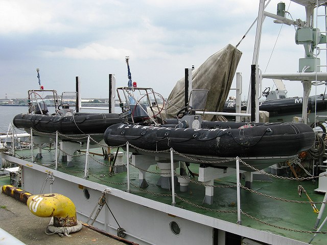 ・PL119 すずか 前日行われていた対テロ訓練時は近くで撮影できなかった為、この日改めて再出撃。 船首の「主砲」。カバーがかかっていてよく判らないけど、オープントップ式の40mm機関砲かも? しれとこ型には40mm/35mm/20mmの各タイプの機関砲を搭載したものがある。 (左)「すずか」の搭載艇 (中・右)そのほか、「すずか」は大小合わせて4隻の複合艇を搭載しているようだった。 建造後25年以上が経過し老朽化が進んでいる「しれとこ」型は、順次新造船への置き換えが進んでいる。 ・PM28 いすず 鳥羽海上保安部に配備されているが、この日は名古屋港水族館裏手の埠頭に接岸していた。 (左)船首には遠隔操作型の20mmバルカン砲を装備している。 (右)船橋直前には、遠隔操作式の放水銃を装備。 (左)船橋上部及びマストの状況。 船橋上部には暗視装置なども装備されている。 (右)電光表示板。 多くの海保船艇が装備しているが、近くでよく見るとシート状のものなのね。 (左)搭載されている複合艇。 画面右手の揚収装置により、航行中も発進/回収できるそう。 画面左手には「いすず」が搭載している大出力デーィーゼル機関のための吸気口が見える。 (右)後方から。 3基のウォータージェットにより30ノット以上の速力を発揮することが出来る。 ・「すずか」の出港 先が見えつつある「しれとこ」型なので、撮れる時に撮っておこう…と翌朝の出港の様子も撮影してきました。 (左)到着した時には、既に出港に向けた作業が進んでいた。 (中)海保監視取締艇「さあぺんす」が通過して行った (右)主機関始動 後進をかけて離岸する 出港してゆく「すずか」。 最後になりましたが、情報提供戴いたり現地にてお世話になったりした皆さん、有難う御座いました。 PR