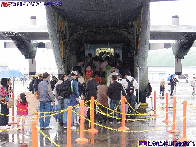× [PR]上記の広告は3ヶ月以上新規記事投稿のないブログに表示されています。新しい記事を書く事で広告が消えます。 (左)地元飛行隊の一つ、救難教育隊のUH-60J救難ヘリとU-125A捜索機。 (右)HU-60Jの傍らには、ヘリ同様「洋上迷彩」に塗られたチャリが展示されていた。よく見たら「航法レーダー」間で付いてるし!! (左)T-7初等練習機。静浜基地より飛来。後方には県営名古屋空港に駐機するビジネスジェット機が見える。 (右)T-400練習機。C-130など大型機パイロットの養成に使用されている。 美穂基地(米子空港と共用)より飛来。 (左)浜松基地のT-4練習機。 同基地には「レッドインパルス」塗装やロービジ塗装のT-4練習機もいるとの事だが、今回はノーマル塗装機が飛来。 (右)ブルーインパルスのT-4練習機。 ブルーは当日、翌日の岐阜基地航空祭に備え岐阜基地に展開していたが、予備機(尾翼のポジションナンバーが無い)の本機のみ小牧にて地上展示された。 (左)F-2A支援戦闘機。岐阜基地の機体かと思いきや、三沢基地より飛来のものだった。 (右)インテイク横には、グァムで実施された米軍の演習「コープノース」参加の記念マークとミッション(爆弾投下?)マークが描かれていた。 バルカン砲方向付近の煤汚れにも注目。 (左)こちらも三沢より飛来のE-2Cホークアイ早期警戒機。 元々艦載機なのでスペース節約の為翼を畳む事ができる。 (右)海上自衛隊のP-3Cオライオン哨戒機。 厚木基地の第六航空隊所属機だが、同飛行隊は部隊統合により間もなく消えてしまうとの事で、部隊ワッペン等を「これで最後でーす」と販売していた。 ワタシも一枚購入したのだが、折からの雨により販売のテーブルは主翼エンジン付近に後退しており、機体の周りに張られたロープ付近にて雨に打たれている隊員さんに欲しい品物を注文すると、そこまで商品を取りに行って売ってくれると言うシステムだった。 今となってはロービジ化で見る影も無いが、かつては尾翼に大描きされたオリオン座のマークでおなじみの飛行隊だった。 (左)美穂基地より飛来のYS-11輸送機。 言わずと知れた国産旅客機がベース。 (右)入間基地より飛来のU-4他用途機。 多用途機と有るが、主たる任務は人員などの輸送。大型ビジネスジェットガルフVがベース。 (左)こちらも入間より飛来のC-1輸送機。 後継機C-Xが各務ヶ原の川重にて開発中だが、残念ながらスケジュールに遅れが出ており初飛行はまだ行われていない。 (右)お馴染地元のC-130H輸送機。地上展示の機体ではなく飛行展示に向けて駐機エリアにて待機中の機体。 (左)小松基地のF-15Jイーグル (右)百里基地のRF-4EファントムII偵察機。 共に前方の写真は速報版に載せたので、今回は後よりの写真(^。^) (左)例年どうり中エプロンにてC-130Hの展示が実施されていた。 (右)機内では新装備「機動衛生ユニット」を公開中だったが、時間が無かったので列に並ぶ事は出来ず。スマン。 (左)格納庫内にて展示されていたC-130H@イラク仕様。 (右)別の格納庫では救難団の機体を公開していた。 写真のライトアップされたUH-60Jは、おデコ(?)部分のカバーが外されていて、中の機器が見える。 (左)MU-2とU-125A。新旧捜索機。 (右)MU-2の主翼にスクリーンを吊るして、訓練の模様等を撮影したビデオ上映中。 関係無いですがこの格納庫、少し高い所に「テラス」が作られていて、何だか特車2科のハンガーみたいだなー、とアホな連想をしてしまいました。 (^_^;) …つづく。 本投稿及び添付した写真は私ちゃりんこジョニーの著作物であり、他のサイト・掲示板及びブログ等への無断転載を禁じる。 特に、悪質パクりブログ「中華人民共和国萬歳」改め「JMSDF rie」を運営していた、支那人窃盗常習犯sunbinsiftに対しては強く抗議する。 PR