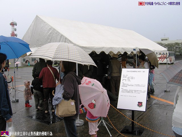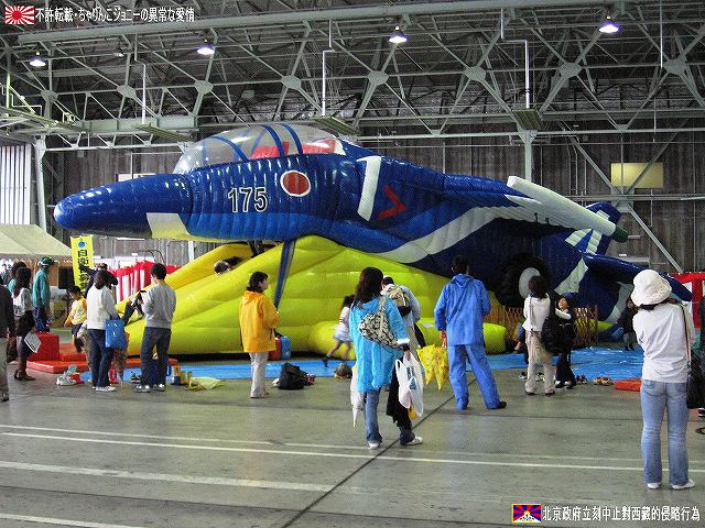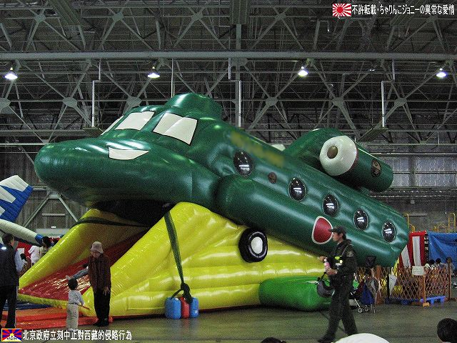 × [PR]上記の広告は3ヶ月以上新規記事投稿のないブログに表示されています。新しい記事を書く事で広告が消えます。 この写真は航空機の牽引車を利用した「花自動車」のクローズアップ。ピ…もとい!! えぇ~っと、来年の干支に因んだイラストかな? (;^-^A 2編成用意された花自動車だが、生憎の雨のため格納庫内に「展示」されるにとどまってしまった。 ・ブルーインパルスを巡るあれやこれや? しかし今年も、地元自治体が「基地機能強化の布石となりかねない」等と訳の判らない事を言い反対した為実現せず。 そんな中、実機の地上展示と共に目玉だったのが、ブルーインパルスjrの展示走行。今年はシーズン途中から屋根付き3輪タイプのミニバイク(ピザ屋さんの配達でおなじみのアレ)へと「機種改変」され、ワタシも見るのを楽しみにしていたのだが、皆さんご存知のと入り午前中の「展示飛行」に於いて接触・転倒事故を起こしてしまい展示中止、そのまま機材は格納庫へと撤収したのでお昼過ぎに現地へと到着した私は車輌の撮影すらかなわず。 その後情報が殆ど無いのですが、どうやらお怪我をされた隊員が居られる様で、お見舞い申し上げます。 写真はブルーインパルスjrの展示走行エリアを囲う「ばみり」。 格納庫内に置かれていた「エア遊具」(空気で膨らます滑り台)。 コドモに大人気だか、意外と再現度が高くて「おおきなおともだち」も納得の出来? (右上)F-86ブルーインパルス。 (左下)CH-47チヌーク。手前を展示飛行に向かう本物のパイロットが歩いています。 実はこのエア遊具、撤収が14:00と比較的早く、去年はしぼんだ所しか撮影できなかったので、今年は到着してほぼ一番最初に撮影しました。(^_^;) 予行のドサクサで、編隊を組んでスモークを曳きつつ1航過とかアリかも?とも思いましたが流石にそこまではせず(^_^;) 写真は「スタークロス」で描き出された星のマーク。1機少ない編成で予行を行っていたのか線が1本少ないかな? 使用機材のピッツは一部が木製で布張りの機体な為、雨を避けて格納庫内に展示されていた。 今年は機体前半部分の塗装が変更されたいる。 ・展示車輌など (左)基地の消防車。 まさかこの数日に後あんな「活躍」があるとは…。もっとちゃんと撮っておけばよかったな~ (右)ペトリオット一式も展示されていた。 毎年陸自の装輪式車両が何台か展示される。 (左)守山駐屯地よりやって来た科学防護車。 マニピュレータや風向センサー等を展張した状態で展示されていた。 (右)手術車と手術準備車(手術「待機」車だったかも?)及びパジェロ。手術車は車内を公開していた。 春日井駐屯地より参加。 (左)空自のVADS…なのだが、テントを張ってその中で公開していたので何が何だか…(^_^;) (右)帰り際にようやくマトモに撮影…ってカバー被ってますヤン!!(^。^;) 後方には81式短SAMの発射機及びレーダー車も居る。 ・保存展示機 (左)F-86Fセイバー。 いわずと知れた空自黎明期の主力戦闘機。 (右)F-86Dセイバードック。 F-86にレーダーを搭載した機体。 国産初のジェット練習機。最後の活躍の場は小牧基地の第5術科学校飛行班だった。 同機の退役後、第5術科学校の飛行班は解散し、実機による管制官の訓練は行われていない模様。 今年の小牧基地航空祭の主役はKC-767空中給油・輸送機だった筈だが、その納入スケジュールは遅れに遅れ、未だに実機は到着せず。 来年の小牧航空祭で見られるのか?(^。^;) さて、いまさらですが… 米海兵隊キャンプ富士フレンドシップデーのアルバムUPしました。 本投稿及び添付した写真は私ちゃりんこジョニーの著作物であり、他のサイト・掲示板及びブログ等への無断転載を禁じる。 特に、悪質パクりブログ「中華人民共和国萬歳」改め「JMSDF rie」を運営していた、支那人窃盗常習犯sunbinsiftに対しては強く抗議する。 PR