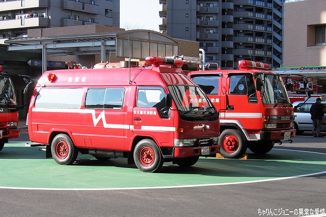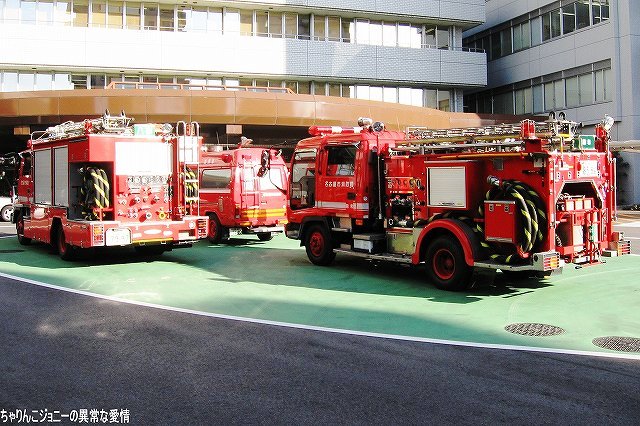 出初式の模様の他、予行時に撮影した写真も纏めてあります。 ・オマケ 先日所用にて出かけたとある病院にて撮影した消防車たち。 ホース等を展開するでもなくただ駐車していただけなので、訓練やましては実際の出動ではなさそう。或いは防火設備の点検か何かにきていたのかな? 何でわざわざ消防車で? と思われる方も居られるでしょうが、万が一出向先似て出動がかかった場合、すぐさま出動するため…だと思う。 (^。^) タンク車。 機器や機材をシャッターの中に納めた「ボックス型」の車両が多い名古屋市消防局に有って、このような機器が露出した消防車らしい消防車は少数派のよう。 見た所比較的旧式の車両のようだし、所属消防署の表記も無いので予備車的車両?? 車体側面に機器等を納めたシャッターを備えた「ボックス型」の車両。 シャッターの中にはレスキュー用の機材が収まっていると思われるが、車体後部にホースが見える事からもわかるように、通常の消防車としての機能も有している。 ドイツのイヴェコマギルス製の車両。 ・護衛艦「あたご」と漁船が衝突 なんとも痛ましく残念な事故です。早く行方不明の人が見つかると良いですが…。(せめて救命胴衣をしていてくれれば…と思いますが) 事故原因云々については今後の調査を待つしかないですね。 ・「しらね」火災原因は無許可で持ち込まれた缶コーヒーの保温機? (~ヘ~;)ウーム… ・多用途支援艦「えんしゅう」「げんかい」 明日就役 これで海自主要5基地に多用途支援艦が配備されるわけですね。 PR
