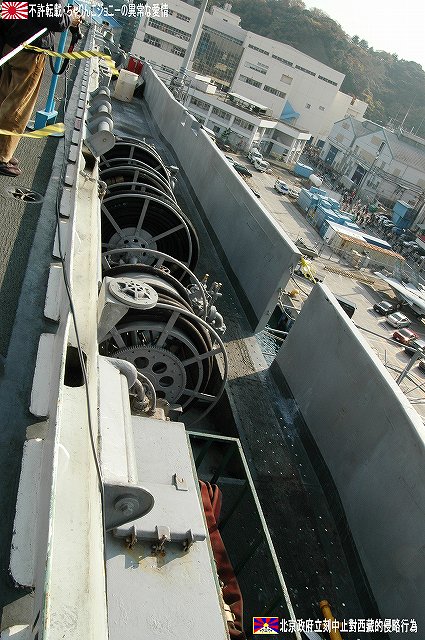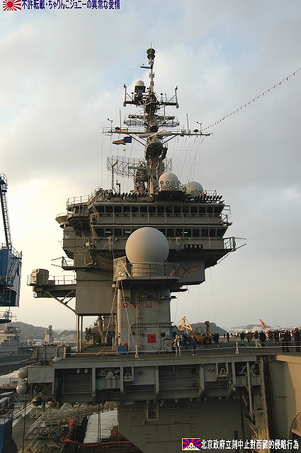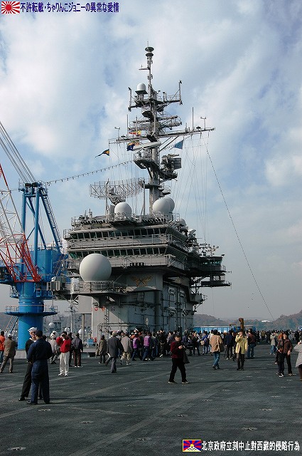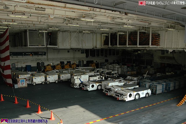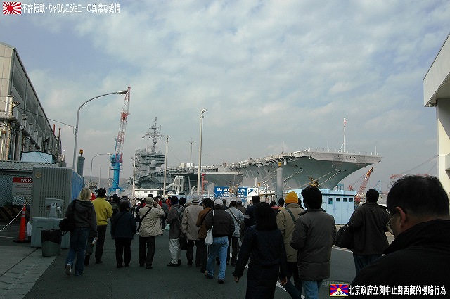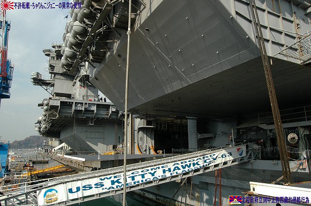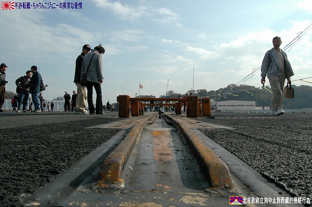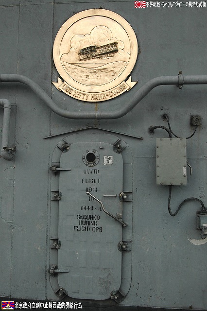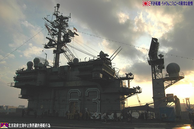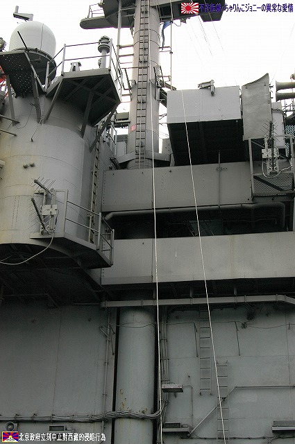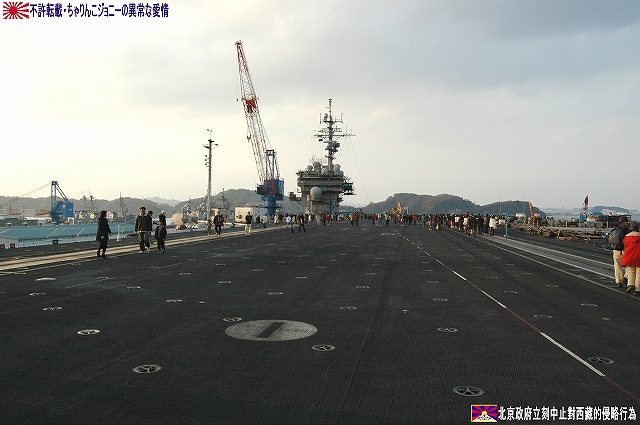 写真は古くからの景勝地 これだけ奇麗に富士山が見えたのは始めてかも? また、御殿場付近では演習場上空にて空挺降下の訓練の模様が遠望出来た。 そうこうするうちに、10:30頃現着。 公開開始1時間前にもかかわらずゲート前には列ができていた物の、その長さは比較的短く、先ずは 我 奇襲ニ成功セリ と言ったところか。 時間を追うごとに列の長さは加速度的に長くなってゆくであろうし(実際そうなった)、艦の公開時間は事前のアナウンスに寄れば12:00~15:00の僅か3時間との事だったので、タイムロスの要因になりそうなことは出来るだけ排除したかったんすわ。 事前にバッグの中へ身につけている金属類(小銭入れ/時計/携帯電話等)を全て入れておき、それらの脱着を容易に行えるような装備体系にしておくのが、開門直後の「勝負のかかった時間帯」にタイムロスをしない為のコツ。 写真は基地内に居たK-9(軍用犬)ユニット。 (左)歩く事暫しで、 (右)速攻が幸して、並ばずに乗艦できた。 事前には15時までとアナウンスされていた公開時間だったが、実際には16時まで乗艦を受け付けていたので、夕方にもう一回りしています。 …と言うことで、お昼過ぎと夕方に撮影した写真が混在している点をご承知置きくださいませ。 (左)格納庫内に置かれていた各種車輌。 (中)飛行甲板に到達。 (右)カタパルト後部に有るデフレクター(だったかな?)。 発艦時、フルスロットルにした航空機のジェット排気から甲板後方の諸々を守るため、航空機がカタパルトにセットされたときに立ち上がる。 (左)カタパルトを最後部より。 キティーホークには艦首及びアングルドデッキに各2基ずつ、4基のカタパルトが装備されている。 (右)シャトル付近。シャトルの上に乗っかっているのは、カタパルトを使用しない時に溝にはめておくゴム。 凹凸部分で見学者が躓かない様に置かれているオレンジ色の物体は車輪止め。 背後のコンテナハウスは補修工事に関連したもののよう。 (左)近接防御ミサイル発射機(RAM)。 近年の対艦ミサイルの中には、音速を超えて飛翔する物があり、従来の20mmCIWSでは、撃墜しても超音速或いはそれに近い速度でミサイルの破片が艦に降り注いでしまう怖れが有る為、より射程の長いミサイルを以って個艦防御をする。 1つま発射機に21発の対空ミサイルが装填出来るそう。 (中)キャットウォーク。ただの通路ではなく各種機材等も置かれている。写っているホースは航空機への給油用? (右)埠頭に置かれているトムキャット。艦載機が不在の間に艦の乗員の訓練などに用いるらしい。 厚木の展示機と共に日本に残る唯二機のトム猫だが、こちらはエンジンを始め各種パーツが抜かれてチョット残念な姿。 (左)アングルドデッキのカタパルトは整備中のようで、外された部品が艦首左舷側の飛行甲板に並べられていた。 後方に写っている埠頭は、空母ジョージ・ワシントン受け入れの為整備中。 (右)カタパルトシャトルも置かれていた。甲板上に見えているのは装置全体からすれば「氷山の一角」。 航空機は、前脚に装備されたランチバーにてシャトルに固定され、約76mを2秒間で進む間に約273km/hまで加速され空中へと打ち出される。 何だか鉄道のレール交換作業にも通じる所のある光景だなぁ。 (左)艦首の「63」 (右)艦首付近から後方を望む。 キティホークの全長は323m、全幅は82m。 (左)艦橋…と言うかアイランドを正面から。根本は意外と細いのね。 アイランド向って左側の狭い甲板スペースは、弾薬置き場として使用される。 (右)艦橋の他、マストや煙突が一体化している。正に飛行甲板という海に浮かぶ島のよう。 (左)アイランドにあったキティーホークのエンブレムと扉。 艦の名前は、1903年12月17日にライト兄弟が人類初の動力飛行を成功させた地の地名より。 エンブレムに描かれている複葉機は、当然ライトフライヤー。 (右)アイランド側面には巨大な艦番号が。 その上に描かれている注意書きは「ジェット排気及びプロペラとローターに注意せよ」。 広大に見える飛行甲板も、航空機を運用する場所としては極めて狭い。 (左)アイランドに設けられたマストは、ゴールデンゲートブリッジを通過する為、飛行甲板側に倒せるようになっている。写真はその根本で関節状の構造をしているのが判る。 (中)…のだが、実際には配管類やキャットウォーク等がマストの横を幾つも横切っており、マストを倒すのは不可能に近いかも? (右)アイランド後方には、航空機運用の指揮所が設けられている。 …つづく。 本投稿及び添付した写真は私ちゃりんこジョニーの著作物であり、他のサイト・掲示板及びブログ等への無断転載を禁じる。 特に、悪質パクりブログ「中華人民共和国萬歳」改め「JMSDF rie」を運営していた、支那人窃盗常習犯sunbinsiftに対しては強く抗議する。 PR