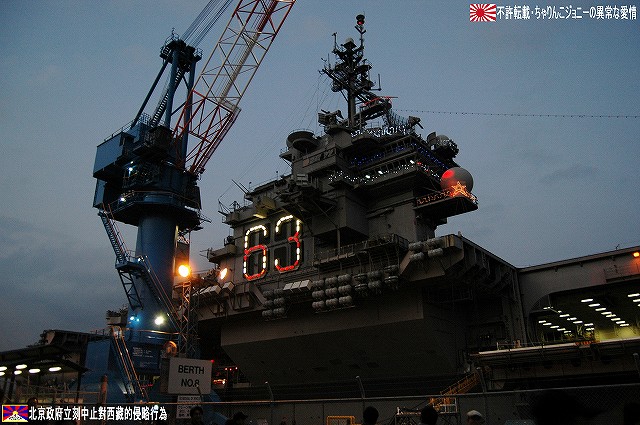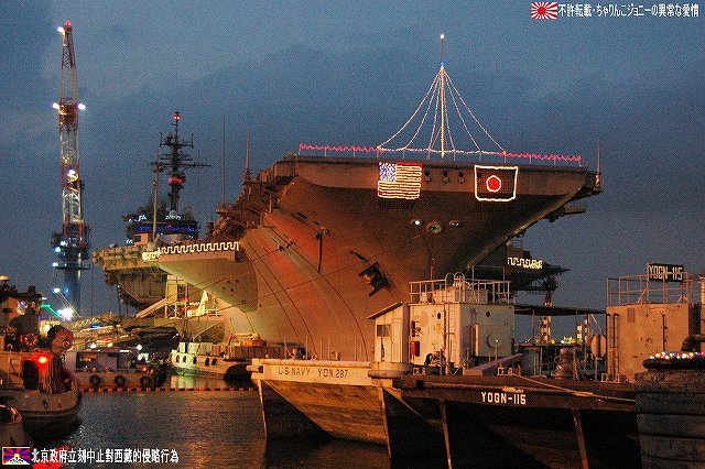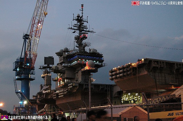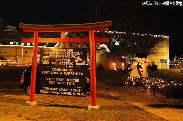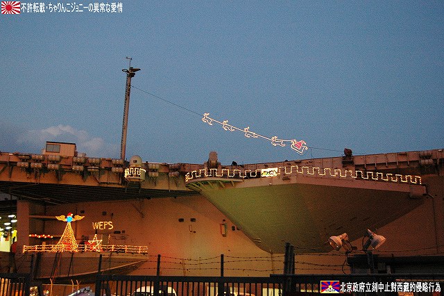 × [PR]上記の広告は3ヶ月以上新規記事投稿のないブログに表示されています。新しい記事を書く事で広告が消えます。 写真は米軍基地名物鳥居のオブジェ。本物件には太鼓橋を模してものも付属しているが、アメリカンな消火栓はともかくとしても、スノーマンも並べておかけて何が何だか…状態に。(^。^;) 1867(慶応3)年に起工し1871(明治4)年に完成した日本初の乾ドック。その後いろいろ有って(^。^;)現在は米軍が使用しているよう。 (左)基地内を運行するバスのバス停に描かれた、アラン・シェパードのイラスト。 有人宇宙飛行でソ連に遅れをとったアメリカが、1961/5/5マーキュリー3号にて弾道飛行ながら初めて宇宙に送り込んだ人間が、海軍テストパイロット出身のアラン・シェパード宇宙飛行士だった。 その後シェパード飛行士は1971年にアポロ14号にて月面に降り立ち、人類で始めて月面でゴルフを楽しんだ。 (右・中)このほかにも此処には海軍出身の有名人と思われるイラストが描かれていた。 (左)アメリカンな公衆電話。 (中)日没時間にあわせて降納される国旗(の有るキティの艦尾方向)へ正対し敬礼する米兵。 (右)…それはいいのだけれども、我々一行がすご~く気になったのは、彼等が乗ってきたカートの荷台に書かれたADULT SPORTSの文字。男子中学生ぢゃ有るまいし、「アダルト」と言う単語に過剰反応しすぎ?(^。^;) (左)すこし位置を替えてアイランドを撮影。 (右)も少し移動。 (左)飛行甲板からはサンタさんが発艦中…向きが逆だけどね(^。^;) イルミネーションの支柱になっているのは、航空機運用時の風力計などを乗せたポール。 (右)前方から撮影。艦首からは日米国旗を模したイルミネーションが下がる。 タグボートもイルミネーションを実施していた。 その他基地内のイルミネーションも少し… (左)背後の建物は基地の映画館のよう。 (右)CPO(先任伍長)クラブのイルミネーション。 この建物はなんか古そうなので、或いは旧軍時代からのものかも? 当日配られていたプログラムなどには、「第一回ホリデイオープンベース」との記載があったので、今後もこのような基地及び艦艇の公開が期待できるかもしれませんね。 当日現地にてお世話になった皆さん有難うございました。 本投稿及び添付した写真は私ちゃりんこジョニーの著作物であり、他のサイト・掲示板及びブログ等への無断転載を禁じる。 特に、悪質パクりブログ「中華人民共和国萬歳」改め「JMSDF rie」を運営していた、支那人窃盗常習犯sunbinsiftに対しては強く抗議する。 PR