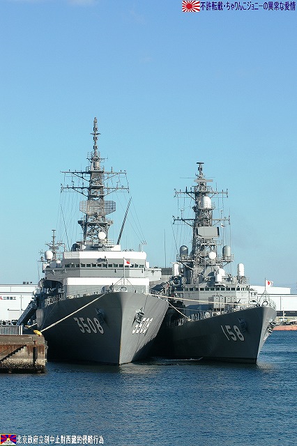 × [PR]上記の広告は3ヶ月以上新規記事投稿のないブログに表示されています。新しい記事を書く事で広告が消えます。 当日はやや風が冷たかった物の好天に恵まれ、13:00の公開開始直後は列が出来るほどの人が見学に訪れていました。 それぞれ「はつゆき」型護衛艦の12番(最終)艦と「あさぎり」型護衛艦の1番艦を練習艦に転用した物、艦種変更にともない艦番号も4桁の物に変更されている。 「はつゆき」型護衛艦の発展型が「あさぎり」型なので、こうして並ぶと何となく似ているのが判るとともに、相違点も見えてくるカモ? (左)埠頭より撮影した「しまゆき」の煙突回り。 筒状の物はSSM(対艦ミサイル)発射筒。ハープーンかSSM-1か 煙突にSSM装填用のクレーンがあるのを、同行させて頂いていたはるなさんが発見。 (右)「しまゆき」より見学開始。前方に練習艦「かしま」が見える。 両艦とも上甲板のみの公開だった。 (左)「しまゆき」艦橋基部に有るアスロック発射管制室(?)の窓に弾痕が…!? …って、シールでした。 (右)「しまゆき」のSSM発射筒(左側)と「あさぎり」のSSM発射筒(右側)。 「はつゆき」型と「あさぎり」型でSSM発射筒の向きが違うなんて、並んでないと気がつかなかったかも? (左)「あさぎり」の短魚雷発射管。 (右)「しまゆき」のアスロック発射機。(ここからは「あさぎり」から撮影した写真) 順光側から撮影すると、海自の艦が美しく手入れされているのが良く判る。 「呉の艦は特に奇麗なんです」と案内の隊員さんが誇らしげに仰っていたのが印象的だった。(練習艦隊は呉基地所属) (左)「あさぎり」の62口径76mm速射砲。 突然ですが此処でお詫びと訂正。今まで散々76mm砲の事を「5インチ砲」と書いて来ましたが、正しくは「3インチ砲」ですのでお詫びして訂正します(滝汗)。 (中)「あさぎり」の時鐘。 この直後に14:00となり鐘を鳴らしていたのだが、よそ見していて撮影できず…と言う痛恨の事態が。 鳴らしているの初めて聞きいたよ。 (右)「あさぎり」のシースパロー発射機。艦尾に装備されている。 (左)「あさぎり」のヘリ格納庫には、実習生用の教室と思われるプレハブ製の建物が作られていた。 これは「しまゆき」も同様で、ここれが練習艦に転用された護衛艦最大の萌えポイントだと思われる(当社調べ・笑)物の、飛行甲板は公開されていなかったので、残念ながら間近に観察/撮影する事は叶わず。 (右)「あさぎり」のシースパロー発射機そばに置かれてあったボート。射撃訓練用の標的かな? (左)「しまゆき」と「あさぎり」を後方より撮影。 「はつゆき」型と「あさぎり」型のヘリ格納庫の大きさの違いなどがわかる。 (右)我々が降りる頃には見学待ちの列が途切れていたので、斜め前方のやや引いた位置から「しまゆき」と「あさぎり」を撮影。 (左)その前方(ガーデン埠頭西側)に接岸していたTV3508練習艦「かしま」とDD158護衛艦「うみぎり」を後方から。 「かしま」の飛行甲板には天幕及び紅白の幕が張られ、その中ではレセプションの準備が行われていた。 (右)同じく前方から。埠頭の端の方に接岸していたのでやや苦しいアングルに。(^。^;) (左)ガーデン埠頭西側の西埠頭より練習艦隊を撮影。 (中)「かしま」の76mm砲。 砲身向かって左側にカメラサイトのようなものが付いている。 (右)位置を変えて正面気味に撮影。 まだつづく。 本投稿及び添付した写真は私ちゃりんこジョニーの著作物であり、他のサイト・掲示板及びブログ等への無断転載を禁じる。 特に、悪質パクりブログ「中華人民共和国萬歳」改め「JMSDF rie」を運営していた、支那人窃盗常習犯sunbinsiftに対しては強く抗議する。 PR