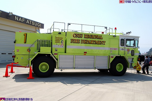 × [PR]上記の広告は3ヶ月以上新規記事投稿のないブログに表示されています。新しい記事を書く事で広告が消えます。 ・フレネルレンズ光学着艦システム フレネルレンズ光学着艦システム(FLOLS)は、艦載機の母艦への着艦を支援するシステムのひとつ。その可搬式の装置が会場隅に置かれていた。 これは、航海前に陸上基地にて行う離発着訓練に使用するためのもので、艦上に設置されたものより若干簡略化されているようたが基本的には同じもののよう。 航空機の進入高度により、中央部に並ぶ黄色と赤のライト(通称「ミートボール」または「ボール」)のうちどれかが点灯して見えるようになっており、(写真では折り畳まれているが)左右に伸びる水平基準面を表すデータムズライトより上のものが光って見えれば高度が高く、下のものが光って見えれば高度が低すぎることを示すし、適正高度の場合は「ボール」とデータムライトとが一直線に並んで見える。 高度が低すぎると艦への衝突などの危険があるので、一番下の「ボール」は赤色になっている。 また、何らかの理由で着艦誘導士官(LSO)が着艦中止と判断した場合は、「ボール」の回りに設置された赤いライト(ウェーブオフライト)が点灯され、それを確認したエビエーター(操縦者の意味。海軍で「パイロット」と言うと本来の意味である「水先人」になってしまうためこう呼ばれる)は場合は直ちに高度を上げて着艦を中止する。 ・警備車両 迷彩塗装のハマーの銃座にはM-60機関銃が据えられ、待機中の兵士のヘルメットは現用の所謂「フリッツ」タイプではなく古くからの鉄製のもののように見える。ハマーはともかくとして、同盟国内の基地警備用なので旧式装備のままってことなのかな? ・基地の消防車など 写真ははしご車。米国製らしく日本の消防車とはまた違う雰囲気。ちなみに、消防隊の職員(の大半?)は日本人のようだった。 はしご車よりロープを伸ばして日米の国旗を掲揚していた。(今日一枚目の写真がそれ。反対側の端は電柱か何かに結ばれていた…と思う) こちらはいかにも飛行場用な感じの消防車。 (右)その前では消防隊のマスコットキャラ(?)が待機中(??) 岩国やキャンプ富士でも「彼」をみかけたので、あるいは米海軍/海兵隊の基地消防隊共通のマスコットなのかも? (左)もう一台、随分とアメリカンな…と言うかシブい外観の消防車も展示されていた。 (右)先ほどのマスコット犬が、子供対象の「放水体験」に飛び入り参加。 普通にしているときはお利口そうなワンちゃん…と言った風情で、普段世話をしている人なのか慣れた人には写真のように頭をなでさせたりもするのだけれども、「知らない人」が手を出すと「ガブリ」のよう。(^。^;) (ワタシの近くで↑の様子を見ていた一般客の一人が「ワタシも撫でて良いか?」と身振りにてハンドラーに聞くと、「噛むからダメ」とこれまた身振りで断られていりした。) ・保存機 基地ゲートそば及び、グランド隅に各種航空機が保存されている。 その塗装は現役時代のものにはこだわらず、現在厚木に所在している飛行隊に因んだものが施されている。 今年新たに保存機に加わっていたUH-3Hシーキング。 昨日掲載したSH-60Fの前任のVIP輸送用の機体で(塗装も現役当時のもの)、飛行状態で展示されている。 本機に続き海自が南極観測支援用に保有するS-61Aが今年引退する事で、通常日本国内で飛行しているところが見られるシーキング系の機体はなくなってしまう。 F-14Aトムキャット。ダイヤモンドバックスの塗装が施されている。 ハンドリング訓練用として横須賀基地に残っている機体はボロボロだが、こちらの状態は比較的良好のよう。(若干塗装が退色してるかな?) 以上2機はグランドの隅に置かれていた機体。当日のグランドではアメリカンフードの屋台などが出ていて盛況だった。 ここからは基地ゲートのそばに置かれていた機体。 F-4SファントムII。こちらはメイスの塗装が施されている。 バルカン砲がなく機首が短いのが「海軍型」ファントムの特徴のひとつ。(こちらが原型) A-4Eスカイホーク攻撃機。 (左)左側面は「ゴールデンドラゴンズ」の… (右)右側面は「ダムバスターズ」の塗装が施されている。 「ダムバスターズ」のダイブする白頭鷲は、A-7コルセアを使用していた時代のマーキングだそう。 SNJ-5テキサン練習機 T-6テキサンの海軍バージョン。VAW-115のマークが貼られている。 …と言う事で、若干駆け足でしたが厚木レポートは以上です。 CVW-5所属各飛行隊のCAG機を一気に見ることができ、特に念願かなってようやく「Chippy Ho!」が撮影できたりして、なかなか楽しいイベントでした。 最後になりましたが、当日現地にてお世話になった皆様有り難うございました。 本投稿及び添付した写真は私ちゃりんこジョニーの著作物であり、他のサイト・掲示板及びブログ等への無断転載を禁じる。 特に、かつては「中華人民共和国萬歳」現在は「異常な愛情」と言う名のパクりブログを運