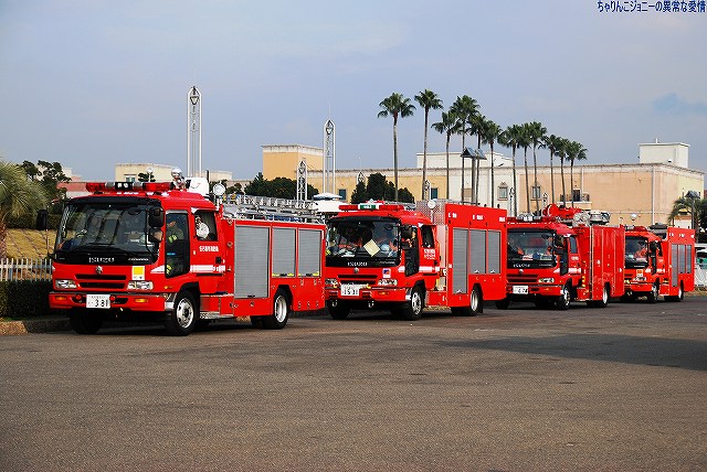 × [PR]上記の広告は3ヶ月以上新規記事投稿のないブログに表示されています。新しい記事を書く事で広告が消えます。 (^。^;)、この日は出初式の予行を撮りに、名古屋港ガーデン埠頭へ行って来ました。 本番当日では不可能な適宜場所を移動しながらの撮影が出来ました。 写真は2台の指揮車。奥の大きな方は名古屋市消防本部の指揮車。 (左)集合がかかり、駆け足で移動するハイパーレスキュー隊の皆さん。 (右)訓練を前にしての訓示中。 この日は出初式の後半に行われる「消防訓練」(要するに「訓練展示」)のうち、前段の「救助訓練」の予行を実施。 (左)一斉放水の段取りを確認中の、名古屋市の消防艇「金竜」(左側)と海保の消防艇「しらいと」(右側)。 (右)予行は3回行われ、1回目の予行では車両の停止位置などを確認。 (左)手前に停まっているバスのような車両は災害救援車。主に水難救助へ対応している車両との事で、車内では救助隊員がウェットスーツ等に着替る事が出来たりする。 (右)災害救援車の影で防護服を装着中 (左)海上では、消防艇の「分列行進」の予行が行われていた。 (右)先頭は名古屋市消防局の「飛竜」。指揮等に使われているよう。 (左)続いて名古屋市消防局の消防艇「飛竜」。 (右)殿は名古屋海上保安所の消防艇FM04「しらいと」。 地上では、一回目の予行を終えた車両が、待機位置へと戻る為に順次Uターンをしていた。 (左)ハイパーレスキュー隊の車両。 (右)ハイパーレスキュー隊の救助車。 名古屋市消防局の各種消防車は、シャッター内に各種機器や機材を納めた「ボックス型」と呼ばれる車両に更新されている。 (左)こちらもハイパーレスキュー隊の救助車。車体にクレーンを装備している。 (右)ハイパーレスキュー隊のブロワー(送風)車。 排煙などに用いるよう。 (左)各種車両が列を為していた。 (右)科学消防車。 屋根上に放水用のターレットを装備している。 (左)照明車(…で良いのかな?) 伸縮する照明塔を装備している。 (右)新形の救助車。 キャブ屋上がサンルーフになっていて、高所に現場が有った場合、車内よりの状況が容易になっている。 (左)従来型の救助車。 救助車とは各種救助機材を搭載した車両だが、ポンプ等放水用の機材も搭載しており通常の消防車としても活動できる。 …と言うか、ボックス式の車両だと、車体に貼られたステッカーでしか車種を識別できない(^。^;) ハイパーレスキュー隊のタンク(ポンプ)車。 この車両は各種機器が露出した従来型のもので、埠頭内に停っているのみで訓練には参加していなかった。(人員輸送に用いられたのかも?) …つづく。 本投稿及び添付した写真は私ちゃりんこジョニーの著作物であり、他のサイト・掲示板及びブログ等への無断転載を禁じる。 特に、かつては「中華人民共和国萬歳」現在は「異常な愛情」と言う名のパクりブログを運営している、支那人窃盗常習犯sunbinsiftに対しては強く抗議する。 PR