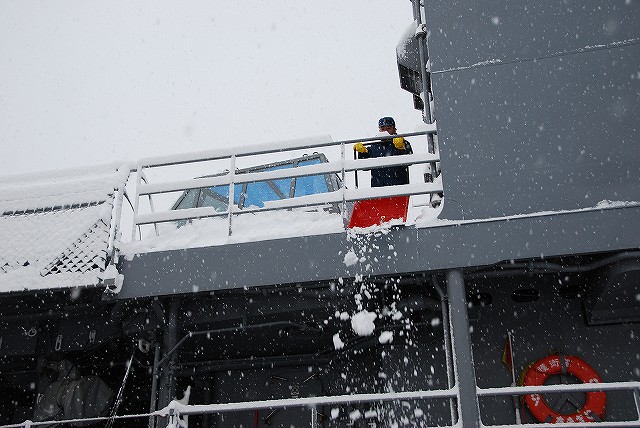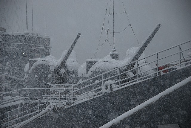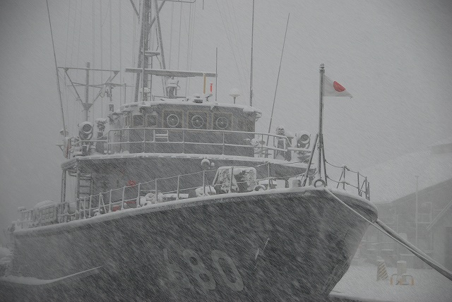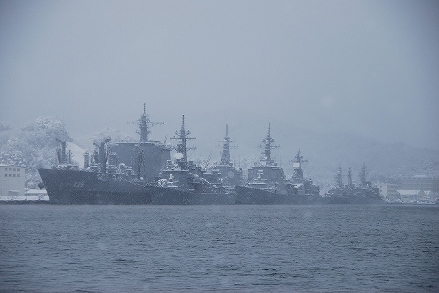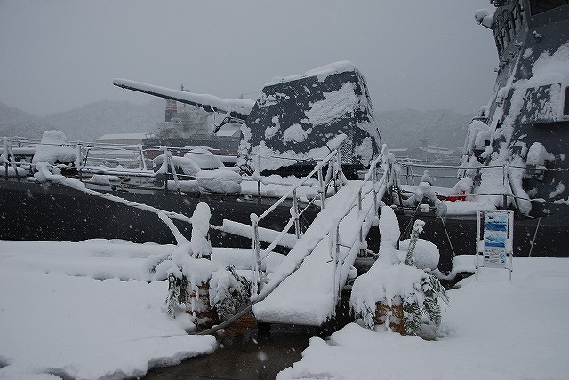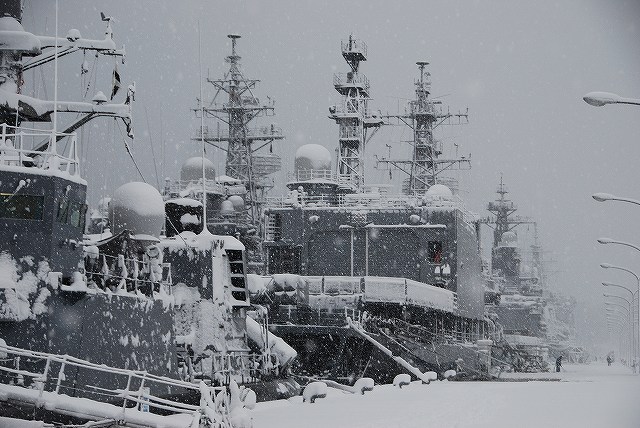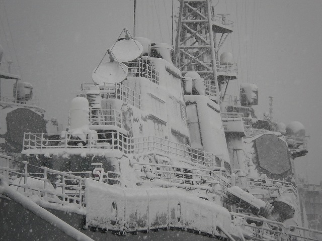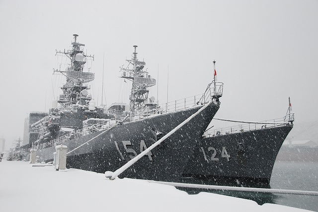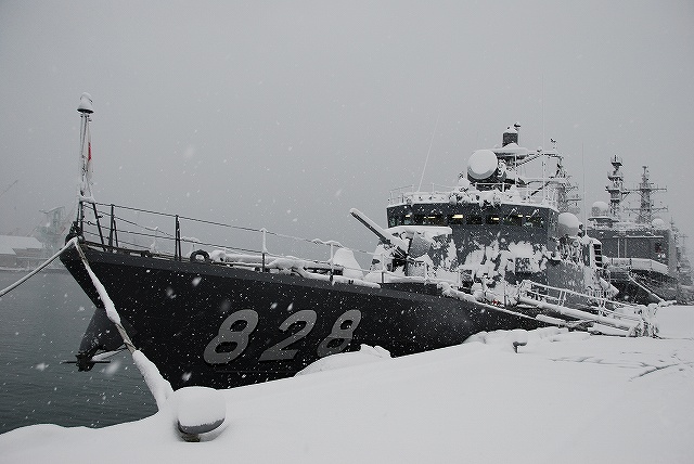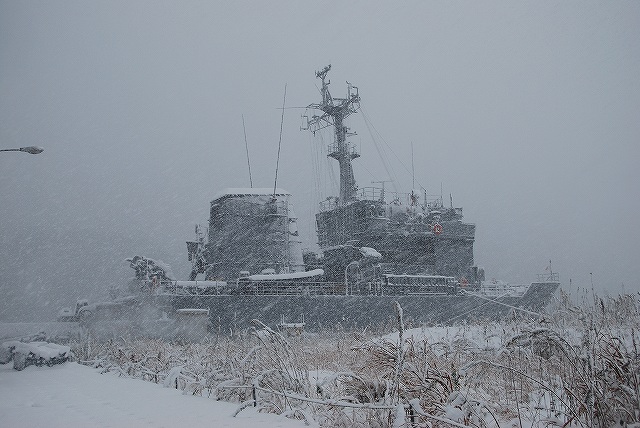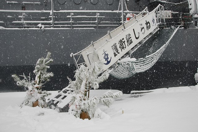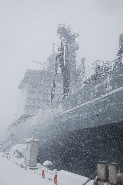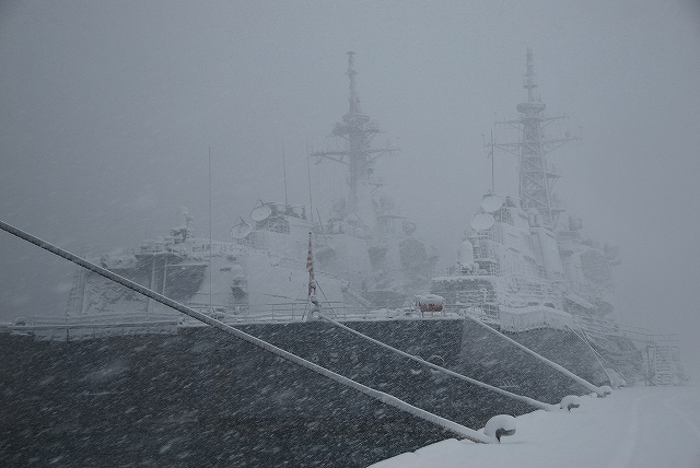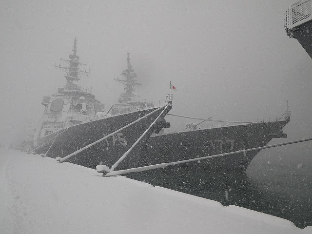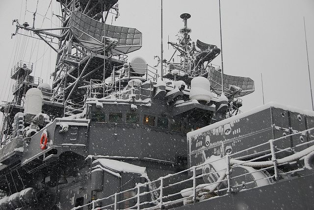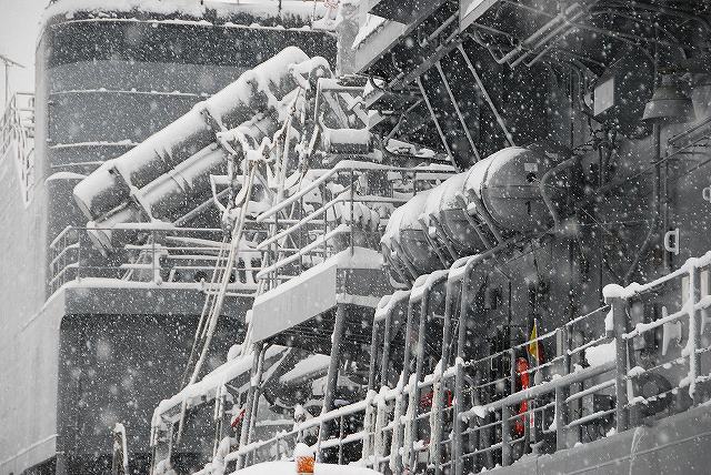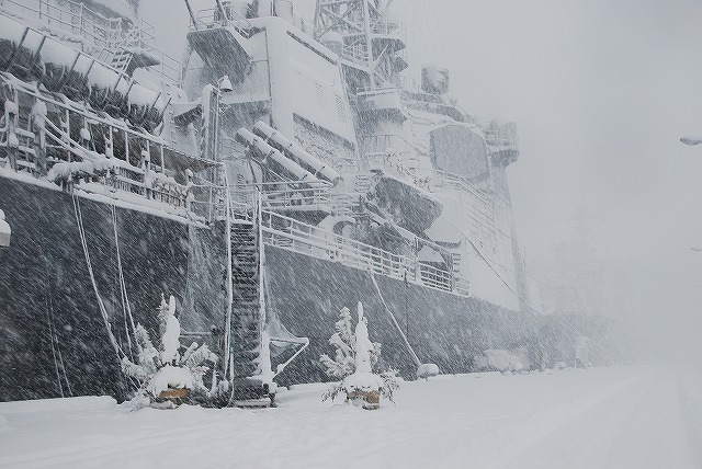 × [PR]上記の広告は3ヶ月以上新規記事投稿のないブログに表示されています。新しい記事を書く事で広告が消えます。 年末年始の期間は連日公開されていましたので、知人の運転する車に乗せてもらい大晦日に「撮影納め」に行ってきました。 当日は「日本海側は大雪の恐れ」…との予報が出ており、悪天候大好きなワタシとしては「雪と護衛艦と門松」の写真が撮れるカモ?と期待していたのですが… とりあえず定番の前島埠頭へ回ったのですが、降りしきる雪のカーテンにより、対岸の海自北吸桟橋が全く見えないと言う状況。 舞鶴市役所裏へ行くと、流石に目の前にいる掃海艇「ながしま」は撮影出来たものの、(距離を詰めたにもかかわらず)相変わらず北吸桟橋の艦艇は全く見えません。 そんなこんなで撮影開始。吹雪ではない物の、降りしきる雪の中時々雷鳴が鳴ると言う状況なので、何時にも増してお見苦しい写真なのはご勘弁ね。 (左)イージス艦「みょうこう」。 ステルス性を考慮して上部構造物に傾斜がついているため、他の艦より着雪量が多いよう。 (中)念願かなって「雪と護衛艦と門松」と言う写真が撮れました。 (今回同様「大雪」の予報が出ていた舞鶴へ出かけて「空振り」だったことが有るんですわ) イージス艦の前方に接岸している、補給艦「ましゅう」の巨体が雪のカーテンにより殆ど見えません。 (右)「みょうこう」には「あたご」が横付けしていた。 両艦で増すとの形状が違うのが…視界が悪くてわかりにくいカナ?(^_^;) (左)補給艦「ましゅう」は桟橋の端ギリギリに接岸していたので、前方よりの全体像を撮影することは出来ず。 (右)桟橋先端部に居た多用途支援艦「ひうち」。 立ち入り禁止区域になっていたので、近付いて撮影することは出来ず。 見学後半になると幾分視界が回復してきました。 (左)舞鶴の「主」、護衛艦「しらね」。 今となっては古さを感じさせるデザインにも思えますが、日本の雪景色にはよく溶け込んでいるように思えました。 (右)「しらね」の舷梯と門松。 護衛艦「あまぎり」(左側)と「みねゆき」 (左)「あまぎり」の門松の付近では、消火用のホースを用いた除雪作業が行われていた。 (右)飛行甲板も除雪中 (左)ミサイル艇「うみたか」 (右)ミサイル艇の門松はやや小ぶりな物だった 航空隊の方は最初から公開は予定されていなかったので、最後にもう一度前島埠頭へ回ってみると、当初は朝来た時と同様何も見えなかったものの、暫く待っている内に視界が回復してきて期待す桟橋の全体像を捕らえることができました。 補給艦「ましゅう」には護衛艦「すずなみ」が横付けしています。 最後になりましたが、当日お世話になった皆様有り難うございました。 PR