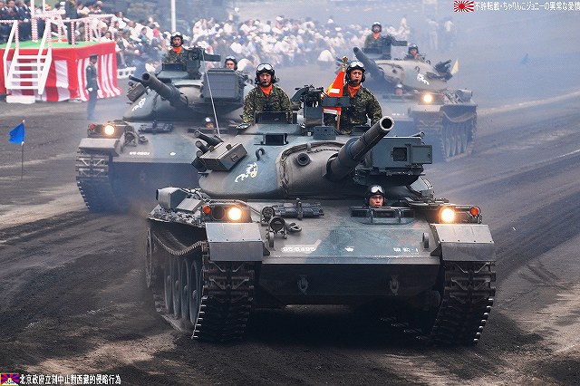 各職種の教育・研究等を行っている富士学校傘下の各部隊には、 ・本部付き車両 (左)観閲指揮官の乗る82式指揮通信車を先頭に観閲行進開始 (右)続いて富士教導団本部付きの車両が行進する。 写真は96式多目的誘導弾システム(通称96マルチ)。79式対舟艇対戦車誘導弾(重MAT)を代替すべく配備が進んでいる対戦車/対舟艇ミサイルで、その発射機は高機動車がベース。 ・偵察教導隊 (左)偵察バイクの一団 (右)87式偵察警戒車 ・普通科教導連隊 (左)第1中隊は89式装甲戦闘車を装備 (右)第2中隊は軽装甲機動車を装備 (左)第3中隊は高機動車を装備 (右)第4中隊は96式装輪装甲車を装備 (左)重迫撃砲中隊の重迫牽引車(≒高機動車)。 (右)対戦車中隊のジープ。搭載しているのは重MATかな? ・特科教導隊 (左)第1及び第2中隊は155mm榴弾砲FH70を装備 (右)第3中隊は99式自走155mm榴弾砲を装備 (左)第4中隊は203mm自走榴弾砲(M110)を装備。 (右)87式砲側弾薬車。203mm自走榴弾砲とセットで使用される弾薬運搬車で、車体は73式牽引車がベース。 (左)第5中隊の多連装ロケットシステム(MLRS)発射機M270。 (右)第6中隊の88式地対艦誘導弾(SSM-1)発射機。 (左)303観測中隊所属の謎のパラボラアンテナ車両。 ベースになっているのは73式大型トラック(新)のよう。つか、何気にカッコイイ車両やな~。 (右)303観測中隊所属の対砲レーダ装置JTPS-P16。 74式大型トラックをベースにフェイズドアレイレーダーが折り畳まれて搭載されており、敵砲迫の発射位置及び弾着位置特定に用いる。 ・教育支援施設隊 (左)91式戦車橋。車体は74式戦車がベース。 (右)92式地雷原処理車。車体は73式牽引車がベース。 ・戦車教導隊 (左)本部管理中隊として90式×1と74式×2両が行進 (右)第1中隊は74式戦車を装備し、砲塔にはイーグルヘッドのマークを描く。 先頭の74式戦車は所謂「74式改」と呼ばれるタイプで、74式戦車の能力向上を目指し。パッシブ式暗視装置(赤外線サーチライトの替わりに搭載)、砲塔上へのレーザー検知装置装備、起動輪への履帯離脱防止装置装着、サイドスカートの装備(実際には装備されず、基部のみが見られる)…等の改修が行われたタイプだが、予算の都合などで実施は試作1両+量産改修4両のみに留まっている。 量産改修型4両は全て戦車教導隊に配備されているそうで、当日は(私が確認した限りでは)2両の「74式改」が見られた。 (左)第3中隊の74式戦車には「III」と描かれた盾を持つ騎士が書かれている。 この74式はドーザーブレードを装備。 (右)第4中隊の74式戦車には、ペガサスのマークが描かれていた。 砲塔には流星のマークが書かれている。 このマークの90式は度々映画等に出演しており、陸自戦車のマークでもっとも有名なものかも? それはともかく、ディーゼル排気と砂埃で大変な事になってます(^。^;) 第5中隊の90式戦車には「5」を図案化したマークが描いてあり、その横棒は戦車の砲身を模している。 (左)この90式はドーザーブレードを装備。 (右)こちらの90式も、ノーマル型とは異なる前面構造を持つ。或いはマインローラ装備用かな? …つづく。 本投稿及び添付した写真は私ちゃりんこジョニーの著作物であり、他のサイト・掲示板及びブログ等への無断転載を禁じる。 特に、かつては「中華人民共和国萬歳」現在は「異常な愛情」と言う名のパクりブログを運営している、支那人窃盗常習犯sunbinsiftに対しては強く抗議する。 PR ![]() ![]() |