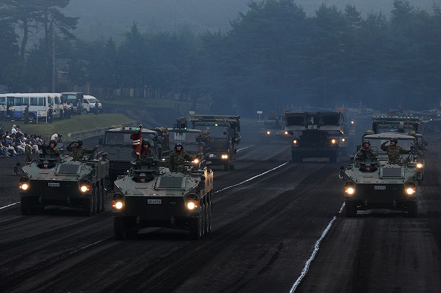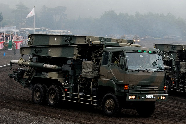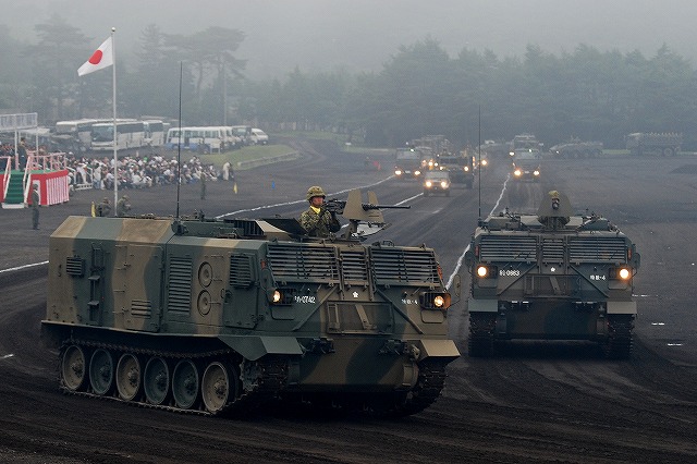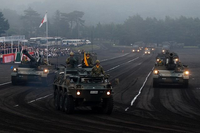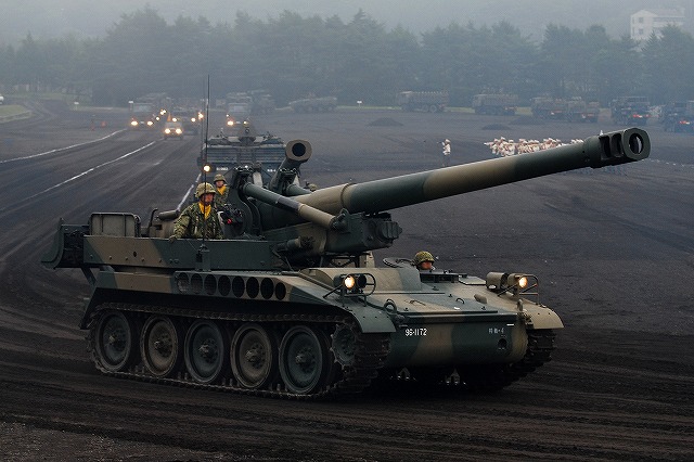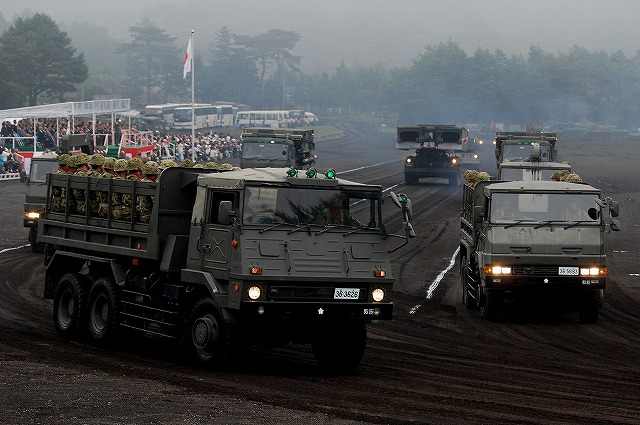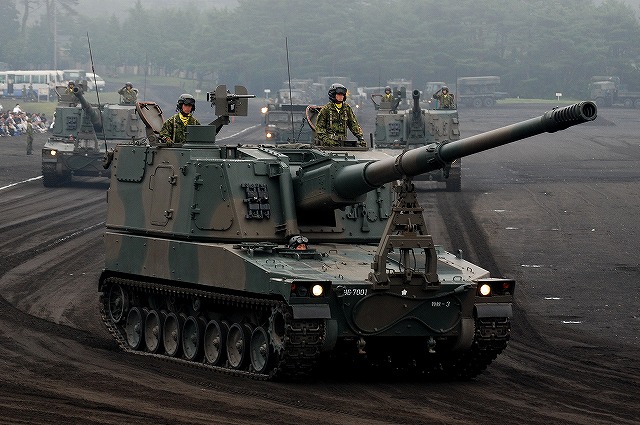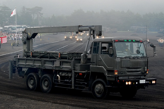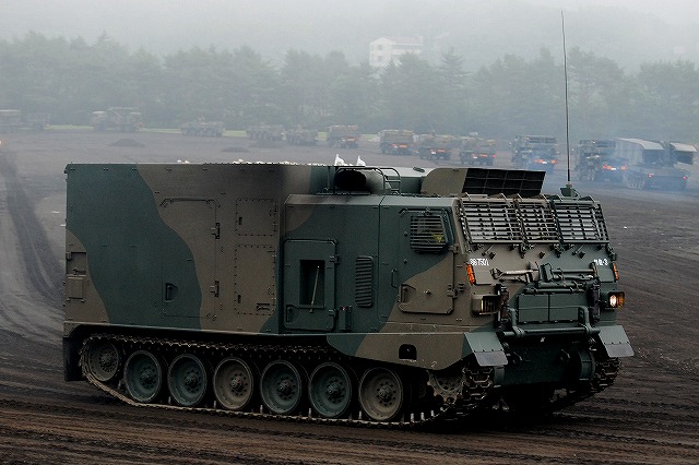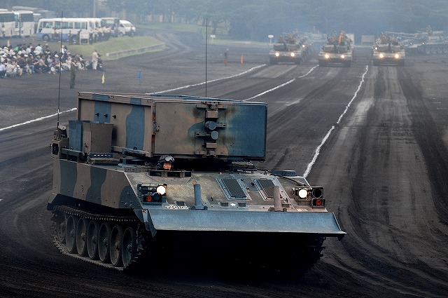 写真は特大型トラックに牽引されて行進するFH-70 155mm榴弾砲 (左)99式自走155mm榴弾砲 (右)99式弾薬給弾車 99式自走155mm榴弾砲と組んで運用される (左)82式指揮通信車など (中)203mm自走榴弾砲M110A2 (右)87式砲側弾薬車 203mm自走榴弾砲と組んで運用される (左)MLRS(多連装ロケットシステム)の発射機M270 (中)MLRSのロケット弾6発を納めるコンテナを搭載した特大型トラック (右)88式地対艦誘導弾の発射機 (左)折りたたまれた対砲レーダー…かな? (右)無人偵察ヘリ用の支援車両のよう (左)教育支援施設隊の隊列 96式装輪装甲車も配備されている (右)大型トラックの旧型(左側)と新型(右側) (左)81式架柱橋車 (中)91式戦車橋 シャシーは74式戦車のものがベース (右)92式地雷原処理車 シャシーは73式装甲車がベース 後方に90式戦車が控えている所で、つづく(^。^;) PR