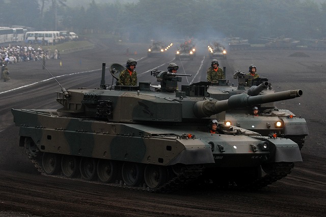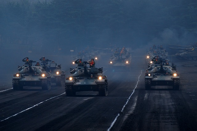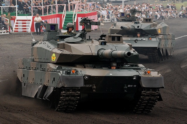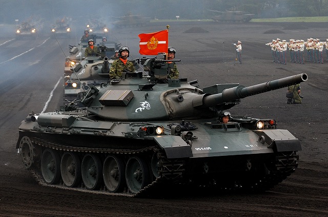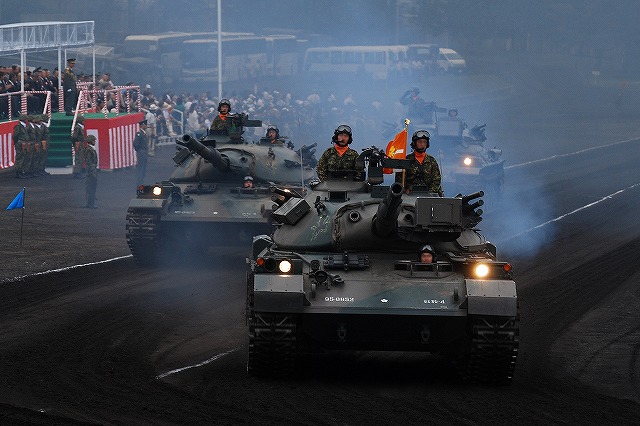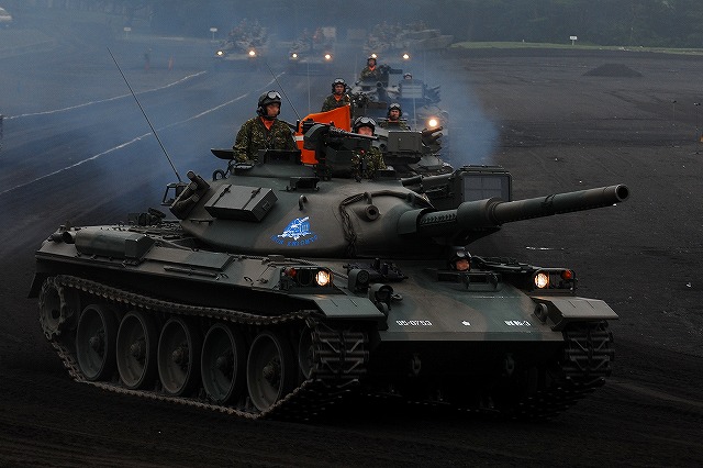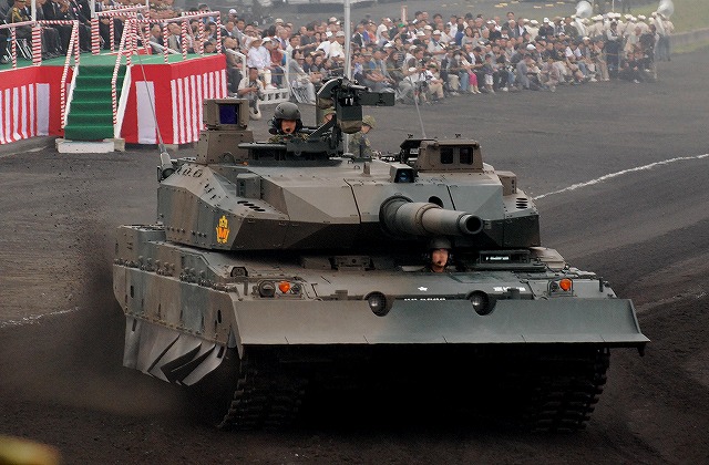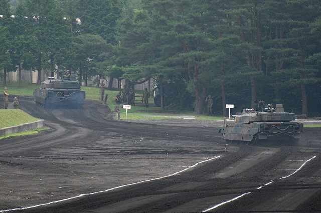 × [PR]上記の広告は3ヶ月以上新規記事投稿のないブログに表示されています。新しい記事を書く事で広告が消えます。 写真は戦車教導隊の隊列の先頭を行く3両の90式戦車。 (左)先頭を行く90式戦車の砲塔には戦車教導隊マークが描かれていた。 (右)それに従う2両の90式戦車には、第2中隊の流星マーク(のロービジ版)が描かれていた。 (左)続いて74式戦車の隊列 (右)第1中隊はイーグルヘッドのマーク この車両は5両のみの改修に終った74式戦車改の一両で、駆動輪に履帯脱落防止装置が付いている。 (左)第3中隊は騎士のマーク この車両は赤外線サーチライトを搭載している。 (右)第4中隊はペガサスのマーク この車両も74式改。74式改は赤外線サーチライトの替わりにパッシブ式の暗視装置を搭載している。 (左)続いて90式戦車の隊列。第2中隊は流星のマーク。 この車両は、地雷原処理ローラー取り付け用の基部が見られる。 (右)第5中隊は数字の「5」を模したマーク。 この車両はドーザーを装備 ドーザー有り/無しの各1両が登場した。 ちなみに、「じゅっ式」ではなく「ひとまる式」と発音するそう。 全長:9.42m 全幅:3.24m 全高:2.30m 戦闘重量:44t 主砲は国産の120mm滑腔砲で、自動装填装置付きのため装填手は居らず乗員は3名。 エンジンは水冷4サイクルのディーゼルエンジンで最高速度は70km/h程。 油圧独立懸架のサスペンションはセミアクティブサスペンションだそう。勿論お約束の姿勢制御も可能。 (左)急停車! 砲塔のモジュール式装甲のうち、側面最前部のものの上面には、スモークディスチャージャーの発射口が開いているのがわかる。 (中)後進しながら旋回 (右)隊列を組んで会場を数週した 10式戦車の開発目的の一つに「ゲリラ・コマンドウ攻撃対処」があるが、12.7mm重機関銃の銃架がこれまでの砲塔に固定から、車長ハッチの周囲に設置されたレールに取り付けられて旋回可能になっているのも、その現れ…カナ? 砲塔のマークは見慣れないものだった。車体の所属表記は「富校-機」。 (左)後ろ姿は90式と似た印象。 車体後部上方の中央付近に後方監視用のカメラが付いている。 (中)ほほ正面から。 車長ハッチ後方の車長用大型潜望鏡が目を引く。 操縦手ハッチ横や主砲防楯上面にもカメラがあるよう。 (右)側面から。 サイドスカートの下部にはゴム製のスカートを装着 …と言う訳で、入ってきたのと同様会場奥の通路から撤収。 今回10式戦車の出番はココのみで、観閲行進/模擬戦/装備品展示には登場しませんでした。 つづく。 PR