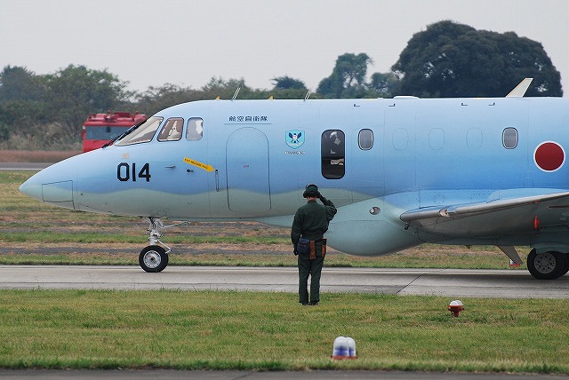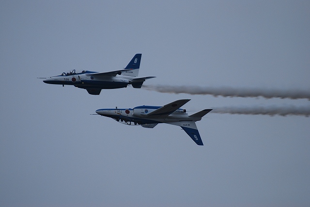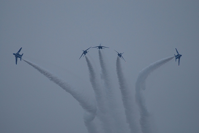岐阜基地航空祭名物、異機種編隊飛行へ向けて各機が離陸してゆく (中)異機種編隊その1 (右)異機種編隊その2 写真では伝わり難いと思いますが、立体的に編隊を組むことにより見る角度が変る(≒接近する)事により、隊形が違って見えるという「3D編隊」だそうです。 異機種編隊を解いた各機は順次着陸。 (左)C-1FTB (中)編隊を解くF-4×3機 (右)着陸したF-2Aよりドラッグシュートが引き出される (左)救難展示へ向かうU-125A (右)同じくUH-60J (左)タイミングを合わせて離陸 (右)ホイストにて吊り下げ/吊り上げの展示を実施した (左)ブルーインパルスのウォークダウン (中)タキシングを開始するブルーインパルス エアインテイクの後方に、ブルーインパルス50周年のマークが入っている。 (左)離陸 (左)曇天だった為、水平系の演技を実施していた。 (右)XC-2の隣に、異機種編隊飛行を終えたC-1FTBが駐機していた 飛実団及び技本のマークが入っていることから岐阜基地にて試験中の機体の様。 「01」のナンバーとプロトタイプ機ならではの派手な塗装から、初号機と思われる。 余程優秀な関節構造及び制御プログラムが組み込まれているらしく、その動きはロボットらしからぬスムーズなものだった。 飛実団め! なんと言うモビ●スーツを作ったのだ!! …と、ネタもやって気が済んだところで、雨が降ってきた事だし撤収としました。 当日お世話になった皆様有り難うございました。 PR