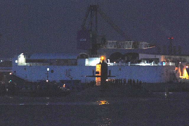 (左)夕日に照らされる、大忙しな吉倉桟橋の状況。 Y1バースには「あしがら」が、Y2バースには「うらが」が、Y3バースへは「まきなみ」がそれぞれタグボートの支援を受けて入港作業中。 (右)私の乗る「ぶんご」はY2バースの「うらが」の横に付ける筈なので、当然暫く沖合いで待機。その間に入港に向けた準備が進む。 (左)入港作業中の「まきなみ」 (中)一仕事終えたタグボートが「ぶんご」に近付いてくる (右)「ぶんご」に取り付かんとするタグボート。背後には米海軍のアーレイバーク級イージス駆逐艦が見える。 (左)0755頃に出港し、横須賀に戻ってきたのは夕日が沈もうとしている1700頃。約9時間の「航海」だった。 (中)他の艦の入港支援を終えて帰ってゆくタグボート。 背後には既に帰還していたミサイル艇が見える。 (右)Y2バースには既にDD122「まきなみ」とDDH144「くらま」が入港していた。 (左)海保「おりおん」型監視取締艇と海自の運貨艇。 「おりおん」型は横須賀配備の「かしおぺあ」かな? (中・右)タグボートと連絡を取り合い接岸する (左)「ぶんご」の入港支援を終えてタグボートが離れる (中)実施海面周囲の警戒艦をしていた1隻、AMS4305多用途支援艦「えんしゅう」が入港してきた。 (右)港内でゴムボートに乗り転落者発生に備えていた水中処分隊の皆さん。 接岸後暫くして上陸。下艦の順番を待っている間に日没時の自衛艦旗降下があったりした。 (左)Y1バースに接岸していた「いなづま」と「あしがら」。 朝にはいた「さわゆき」は何処へ行ったの?(^。^;) (中)Y1/Y2バースの各艦艇。 港に戻ってきても今日の仕事は終っておらず、各艦では翌日の一般公開/満艦飾/電灯艦飾に向けた準備が行われていた。 (右)完全に暗くなってきてから戻ってきていた潜水艦をヴェルニー公園より撮影。 …と言う訳で、長々と続けてきた観艦式予行その2レポートは終了です。最後までお付き合いいただき有難う御座いました。 そして、最後になりましたが当日お世話に成った皆様有難う御座いました。 ・自衛艦旗降下 薄暗かったからオートフォーカスが上手く働いてくれなかっのかピントが甘いですが(^_^;)ゞ、複数の艦から喇叭譜による君が代が流れる様子をお楽しみください。 PR