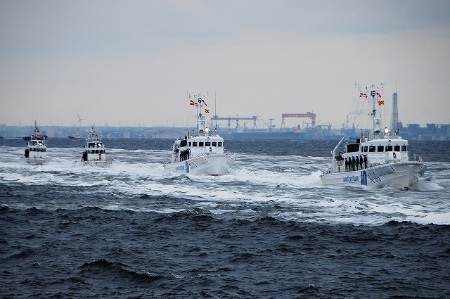 × [PR]上記の広告は3ヶ月以上新規記事投稿のないブログに表示されています。新しい記事を書く事で広告が消えます。 受閲船隊第1小隊は大型の巡視船等で構成 (左)ヘリ2機搭載型巡視船 PLH31「しきしま」(横浜) プルトニュウム輸送護衛の為建造された海保のみならず世界でも最大級の巡視船。 35mm連装機関砲×1・20mmバルカン砲×2と重武装。 (中)ヘリ1機搭載型巡視船 PLH06「ちくぜん」(福岡) (右)1000トン型巡視船「とさ」(高知) 救難強化型巡視船として設計された「えりも」型巡視船は、ヘリとの連携を重視し船体後部に大きな飛行甲板を持つのが特徴。(格納庫は持たないのでヘリ搭載能力は無い) (左)測量船HL01「昭洋」(本庁海洋情報部) (右)航路標識測定船LL01「つしま」(本庁交通部) 2000トン型巡視船PL52「あかいし」(鹿児島) 北朝鮮による工作船事案を教訓に設計された「ひだ」型巡視船は、40mm機関砲・20mmバルカン砲各1門の強力な武装と30ノット以上の高速度性能を持ち、工作船追尾の為高速巡視船やヘリ等で構成される高速機動船隊の現場指揮船としても運用される。 (左)1000トン型巡視船PL62「はかた」(福岡) (中)1000トン型巡視船PL68「すずか」(尾鷲) 拠点機能強化型巡視船として設計された「はてるま」型巡視船は、離島海域等での警備に際しヘリや小形船艇への給油など母船機能を持つ。武装は30mm機関砲と放水銃が各一門。速力は約30ノット。 また、この春就役したばかりの「すずか」は先代の「すずか」(「しれとこ」型巡視船)同様「警備強化巡視船」に指定されており、乗員は警察の機動隊のような装備にて登舷礼を実施していた(右写真)。 受閲船隊第3小隊は高速巡視船で構成 (左)350トン型巡視船PM31「あぶくま」(福島) 北朝鮮による工作船事案を教訓に設計された「とから」型巡視船は、ウォータージェット×3基により35ノット以上の速力を発揮する。 (中)180トン型巡視船PS08「かりば」(根室) (右)180トン型巡視船PS09「あらせ」(宿毛) 外洋高速巡視艇「らいざん」型は同「しんざん」型の改良型で、食料等の搭載量を増やし連続行動時間を延長している。 受閲船隊第4小隊は小形巡視艇で構成 (中)30メートル型巡視艇PC109「なつぐも」(対馬) (右)30メートル型巡視艇PC115「あわぐも」(中城) 「はやぐも」型巡視艇は、領海警備や密漁取締のために設計された巡視艇。 (左)20メートル型巡視艇CL38「しゃちかぜ」(名古屋) (右)20メートル型巡視艇CL125「しらはぎ」(宮城) 「ひめぎく」型巡視艇は、計画中のものも含め150隻以上が全国に配備され、今尚量産が続いている巡視艇。 つづく。 PR