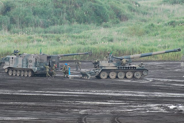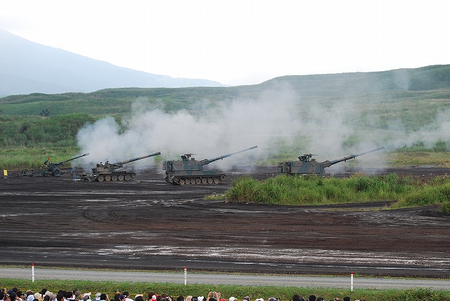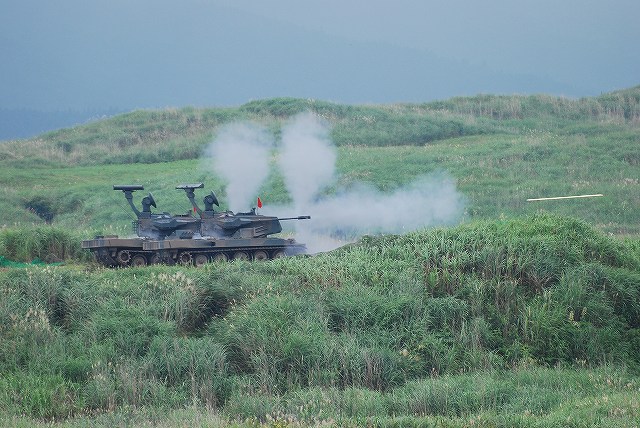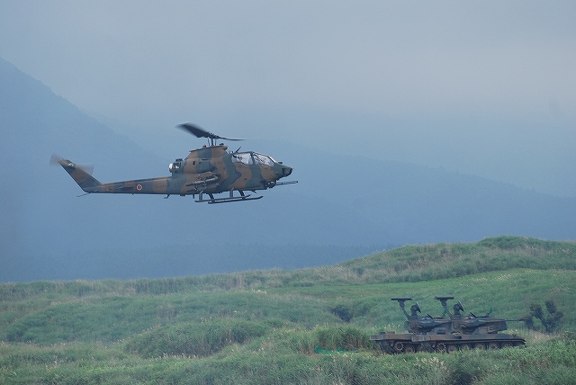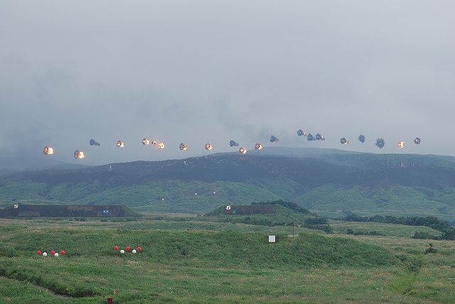 × [PR]上記の広告は3ヶ月以上新規記事投稿のないブログに表示されています。新しい記事を書く事で広告が消えます。 今回は前段演習の写真です。 先ずは空自F-2支援戦闘機による航空火力の展示。 築城基地より2機が飛来し先ずはローパスを実施したものの、雲が低かった為その後は爆音が響くのみ。 それでも爆撃を模してあらかじめ地上にセットされていた爆薬は点火(機影を求め上空を監視していたので写真はナシ)。 (左)203mm自走榴弾砲登場 (中)87式砲側弾薬車 (右)展開中の203mm自走榴弾砲へ弾薬を供給 (左)各種榴弾砲による一斉射撃 (中)目標上空へ同時弾着 (右)撤収~ (左)87式対戦車誘導弾(中MAT)を搭載したジープ。状況中に唯一登場したジープ系の車両。 (右)高機動車をベースした96式多目的誘導弾システムの発射機 (左)89式装甲戦闘車より79式対舟艇対戦車誘導弾(重MAT)を発射 (右)会場左手の射撃陣地より96式多目的誘導弾システム(96式マルチ)を発射 (左)対戦車地雷を空中散布するUH-1J (中)レンジャーをファストロープ降下させたチヌークが派手な機動で離脱する (右)レンジャーの回収はエクストラクションロープによる宙吊り方式 (左)軽装甲機動車より01式対戦車誘導弾(軽MAT)発射 (中)96式装輪装甲車に搭載された12.7mm重機関銃の射撃 (右)84mm無反動砲(0カールグスタフ)の砲弾が空中で炸裂。砲弾の破片が地面に突き刺さっている様子がわかる。 (左)89式装甲戦闘車登場 (中)TOW対戦車ミサイルを発射を展示するためAH-1Sコブラ対戦車ヘリ登場。 (発射の瞬間はうまく撮れなかったけどナー) (右)AH-64Dアパッチは30mm機関砲の射撃を実施、地上へ点々と薬莢が落ちているのが見える。 曳光弾は混ぜてないみたい。 (左)87式自走高射機関砲登場 (右)実際の射撃は別の場所より実施。 ホバリング中の敵攻撃ヘリに見立てた地上目標を水平射撃していた。 (左・中)車体傾斜機能を生かした74式戦車の稜線射撃 (右)90式戦車の行進間射撃は上手く撮れず …と言う事で、前段演習はここまで。 (予定されていたヘリよりの空挺降下は雲が低く視界不良のためキャンセルされました) つづく PR