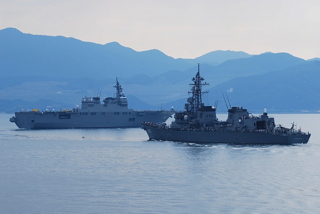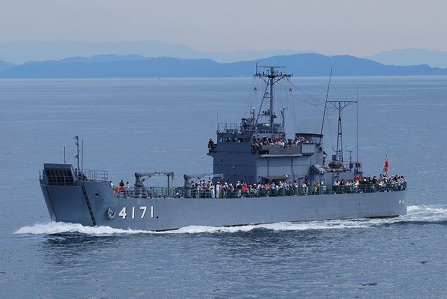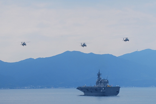 × [PR]上記の広告は3ヶ月以上新規記事投稿のないブログに表示されています。新しい記事を書く事で広告が消えます。 淡路島沖の展示海面に到着し、和歌山及び淡路島から出港した各艦艇からなる受閲側の艦艇とすれ違う。 受閲側の各艦艇… (左)先頭は訓練支援艦「てんりゅう」 (右)飛行甲板には「ガンバロー日本!」等のロゴが書き込まれた無人標的機を展示 (左)掃海管制艇「いえしま」 (右)掃海艇「まきしま」 (左)輸送艦「ゆら」 (中)「おやしお」型潜水艦 (右)護衛艦「はたかぜ」は礼砲(空砲)発射を実施 (左)受閲側の隊列の最後尾は、掃海管制艇と遠隔操縦式掃海具(SAM)×2隻。 (中)遠隔操縦式掃海具(SAM)。 その名の通り掃海管制艇より無線操縦されるとの事でしたが、安全の為か隊員さんが乗船していました。 (右)掃海管制艇「さくしま」 (左)すれ違いが終わった各艦のうち一部が左に転進して2列縦隊を組む。(受閲側の各艦艇も後続) (中)海にイージス艦、空には護衛艦旗。(チョット強引かな?(^。^;)) (右)シャッフルの結果「あすか」の前方は護衛艦「せとゆき」になった。 隊列の前方より航空部隊が接近中。 (左)「いせ」と小松島航空基地より飛来のSH-60J哨戒ヘリ (右)陸自のOH-1観測ヘリとAH-1S対戦車ヘリ (左)小月航空基地より飛来のT-5練習機。大きく翼を振ってパスしていった。 (右)「いせ」と「いかづち」 航空部隊の展示飛行と前後して、二列縦隊で南下していた各艦艇は左右に別れ双方の間隔を広げる形でUターンしていた。 (左)徳島航空基地より飛来のTC-90練習機 (右)岩国基地より飛来のUS-2飛行艇 つづく PR