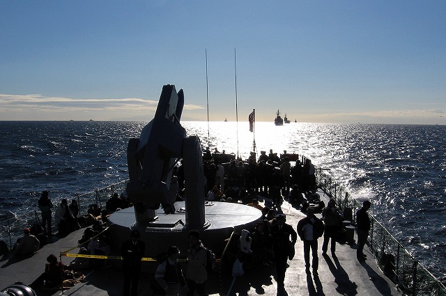 「さわかぜ」は5インチ砲2門にMk.13となかなかカッコイイ船でした。 観艦式の見所と言えば、「さわかぜ」もですが有人式の砲を持つ船が減ってきて、礼砲(空包)射撃も微妙になってきているんですよね。 なんでも、無人の砲では空砲が撃てないらしいのですが、だとするといずれは20mmとか40mm辺りの砲を礼抱用に積んで実施するようになるのカモ?