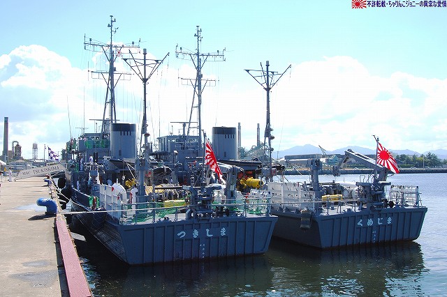 × [PR]上記の広告は3ヶ月以上新規記事投稿のないブログに表示されています。新しい記事を書く事で広告が消えます。 写真は当日午前中に行われた体験航海へ出港して行く2隻の掃海艇で、現地に到着した時に撮影。 この2隻の掃海艇は共に神戸市の阪神基地に配備されており、MSC669「ひこしま」と3隻で第42掃海隊を編成している。 当方は体験航海の乗艦券を持ち合わせていなかったので(つか、最初から応募すらしていない(^_^;))、慌てず騒がす帰還を待つ。 (左)松坂-セントレア間を運航している高速艇「まつかぜ」 (右)明野方面より飛来し松阪港上空を飛んでいった陸自のUH-1。 何処かの防災訓練に参加しに行ったのかも?? 待つ事暫し、体験航海から掃海艇が戻ってきた。 (左)MSC674「つきしま」 (右)MSC676「くめじま」 2隻とも「うわじま」型掃海艇で、艇名はそれぞれ宮崎県の築島と沖縄県の久米島に由来している。 (左)2隻はメザシで接岸していた。 (右)港の一角に接岸していた三重大学の練習船「勢水丸」。 午後の一般公開まで時間が有るので、一旦松阪市中心部まで戻って昼メシを食べる事に。 (左)和牛の産地で名高い松阪で敢えて吉牛を食べる…とかネタでは考えていたものの(実際吉牛有ったし(^_^;))、「ビフテキ」の看板に引かれてこのお店に入ってみる。 (右)…と言いつつビフテキは少々予算オーバーだったので、リーズナブルなビーフカツで妥協する(^_^;) でも味とボリュームは充分以上。 天守閣は1644(正保元)年に台風のため倒壊、その他の建物も明治維新により廃城されて以降に殆どが破却されている。 (左)美しい石垣は今でも健在。 (中)城内には、かつての図書館を利用した松阪市立歴史民俗資料館(写真)や、本居宣長記念館等がある。 (右)天守台より松阪市内を望む 手前の「つきしま」のみが公開されていた。 (左)「つきしま」の20mmバルカン砲。 (右)「くめじま」の20mmバルカン砲。 掃海艇の前部甲板には、水面上を浮遊している機雷の掃討(処分)等に用いる、人力操作型の20mmバルカン砲が装備されている。 (左)「つきしま」の後部甲板に搭載されたフロート。 (右)「つきしま」の後部甲板に搭載された水中処分隊のゴムボート。 (左)「くめじま」の後部甲板では何やら作業が行われていた。 (中)「くめじま」搭載のS-7航走体。 水中または海底の機雷相当に用いる有線式のいわば水中ロボットなのだが、「くめじま」搭載のそれには(阪神基地所属だけに?)阪神タイガースのマークが描かれていた。 (右)「くめじま」の艇名を記したプレートと天日干し中のウエットスーツ。 艇の大きさの割りに広いかも?広くないかも?(^_^;) 壁面の扉やロッカーが木製なのに注目。 護衛艦などでは火災防止の観点から木製のものは極力使用されないが、機雷の中には磁気に反応するものがあるため、逆に金属製のものはあまり使用されない。(つか、船体そのものが木製) (左)「つきしま」の艦橋。 (中)艦橋後部に有る海図台。広げられている海図は勿論松阪港及び周辺のもの。 (右)「つきしま」の時鐘。 事前の予報に反して好天に恵まれ、マッタリと見学することが出来ました。 最後になりましたが、現地にてお世話になった皆様有り難うございました。 本投稿及び添付した写真は私ちゃりんこジョニーの著作物であり、他のサイト・掲示板及びブログ等への無断転載を禁じる。 特に、かつては「中華人民共和国萬歳」現在は「異常な愛情」と言う名のパクりブログを運営している、支那人窃盗常習犯sunbinsiftに対しては強く抗議する。 PR ![]() ![]() |