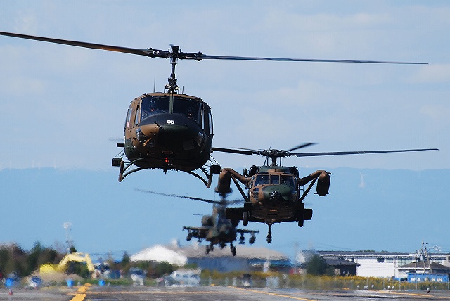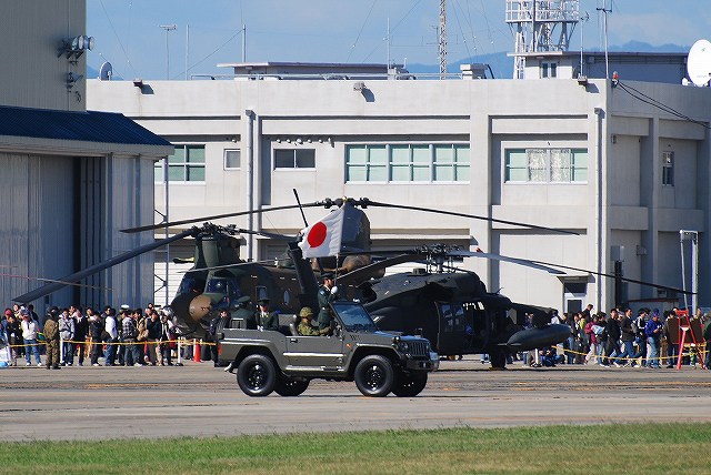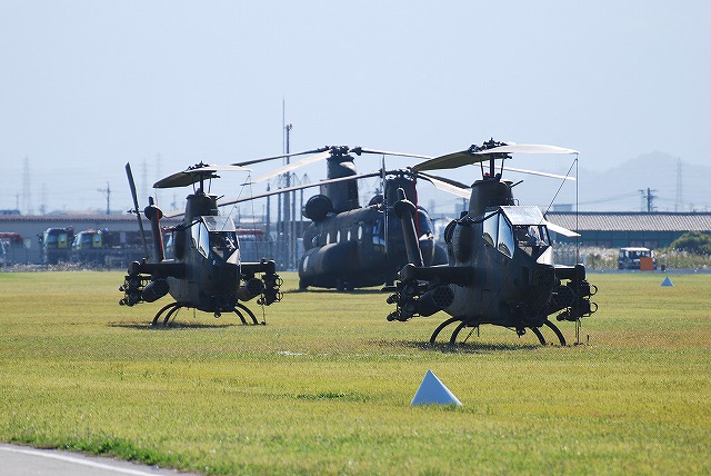 × [PR]上記の広告は3ヶ月以上新規記事投稿のないブログに表示されています。新しい記事を書く事で広告が消えます。 随分と遅くなってしまいましたが、明野駐屯地航空祭の写真です。 (左)近鉄明野駅から駐屯地へと向かう道すがら、米陸軍キャンプ座間よりUH-60Aが飛来するのが見えた。 (右)さらに三重県警のアグスタA109「いせ」も飛来 (左)グラスランウェイ上に駐機していたCH-47JA(手前)とCH-47J。 画面左隅には、模擬戦のために待機しているFH-70 155mm榴弾砲も居る。 (右)AH-1Sコブラ (左)観閲式典のため隊員さんが入場 (中)国旗入場 (右)式典が終わり、隊員さんがヘリへ移動 ヘリの離陸前に空自浜松基地より2機のT-4練習機が飛来し、数回ローパスを実施。 (中)ギアダウン状態で進入し、ギアを収納したところ (右)翼を振ったところ 祝賀編隊飛行へ向けて各機が一斉に離陸 祝賀編隊飛行を終えた各機は順次着陸 (中)純国産の1観測ヘリOH-1の初号機(奥)と2号機(手前) (右)着陸した各機は、観閲台前を観閲行進するようにホバータキシーする。 (左)AH-64DアパッチとOH-1のプロトタイプ機 (中)AH-1Sコブラ (右)順次エプロンへと戻ってゆく つづく。 PR