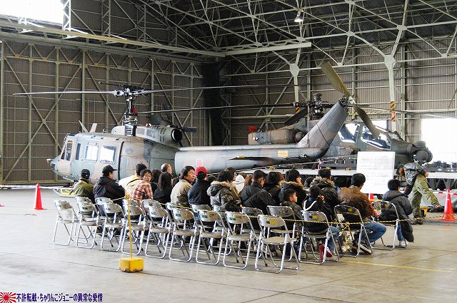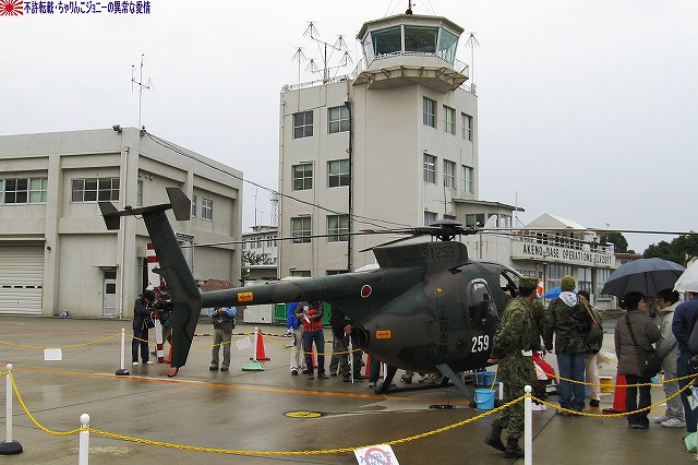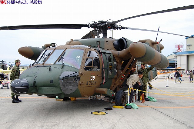 小雨模様だった朝イチに撮影したものと、雨が止み地面が乾きつつあった午後に撮影した写真が混在している点はご勘弁を。 手前のパイプ椅子に座っているのは、「ヘリ地上滑走体験」の参加者で、搭乗を前に注意事項のブリーフィング中。 (左)三重県警のアグスタAW-109「いせ」 津市の伊勢湾ヘリポートをベースに運用されている。 (右)海上保安庁のベル212「かみたか」 UH-1シリーズの双発バージョンで、かつては明野駐屯地に隣接した伊勢航空基地にて運用されていたが、この10月1日より中部国際空港内に新設された中部空港海上保安航空基地へ移転している。 空自で救難捜索機として用いられていたはほぼ同型機のMU-2は今年最後の機体が退役したが、陸自でも代替機のLR-2の配備が進みLR-1は数を減らしている。 LR-1/2ともに、かつては各地の方面隊航空隊に配備されていたが、2006年より航空学校(宇都宮)所用分を除く本州(東北/東部/中部の各方面飛行隊)の連絡偵察機は、木更津駐屯地の連絡偵察飛行隊にて一括運用されている。 米陸軍のUH-60Aブラックホーク。 在日米陸軍第78航空大隊(座間)の所属機。人員輸送に用いられている。 (右)増槽の上にダースベーダーがっ!(違) ヘルメットには暗視ゴーグル用のアタッチメントが付いている。 戦闘ヘリコプターAH-64Dアパッチ・ロングボウ (左)ローターマスト上にミリ波レーダーを搭載した初号機 (右)五号機はミリ波レーダーなし。 手前の砲弾は30mm機関砲弾。 左奥の青いものはヘルファイヤ対戦車ミサイル。コブラに搭載される有線誘導式のTOWと違い無線周波数誘導方式なので、発射後の誘導は必要が無い「撃ちっ放し」式。 右端は肩撃ち式対空ミサイルをそのまま流用したスティンガ空対空ミサイル。 スティンガの陰に隠れているのは70mmロケット弾。 (左)機首下面に装備されたM203E1 30mm機関砲 (右)補助翼に装備された各種武装。19連装のロケット弾ポッドには1発のみロケット弾が装填されている。 翼端のスティンガは上下2発ずつ両翼で4発が装備可能。 (左)対戦車ヘリコプターAH-1Sコブラ。 UH-1シリーズをベースに開発された戦闘ヘリコプター。機首の機関砲は20mm。 (右)多用途ヘリコプターUH-1J。 軍用ヘリのベストセラー機UH-1シリーズに日本独自の改良を加えたタイプ。 観測ヘリコプターOH-6D 観測(偵察)の他操縦訓練や連絡/軽輸送任務にも使用される小形ヘリ。 モノコック構造を採用した卵型の胴体が特徴的。 (右)別のOH-6Dは機内を公開していた 多用途ヘリコプターUH-60JA。 (左)機首に航法(気象)レーダーを装備している。 (右)UH-60Jのコクピット。 米国で開発されたUH-60シリーズは、輸送機への搭載が考慮されたため天井の高さが比較的低くなっている。 そのためエンジン出力(ついでに言えば価格とも)の割に機内容積=搭載量が比較的少なくなってしまい、西側各国の軍隊などへのセールスは不調だったりする。 純国産の観測(偵察)ヘリ。 ローターマスト前方にはTVカメラ・赤外線センサー・レーザー測距機を一体化した捜索サイトを搭載している。 (左)補助翼には増槽(奥)と空対空ミサイル(手前・91式近SAMがベース×2発)ポッドを搭載する事が出来る。 (右)OH-1のコクピット。コブラやアパッチは前席ガナー(砲手)が後席がパイロットだが、こちらは前席がパイロット。 輸送ヘリコプターCH-47Jチヌーク。 重輸送を担当する大型の輸送ヘリコプター。現在は航法レーダーを搭載し燃料タンクの大型化を測るなどした改良型のJA型への更新が進んでいる。 (中)チヌークのコクピット (右)チヌークの機内。 小型トラック(ジープ/パジェロ)や高機動車も搭載可能。 画面左手の壁面には、牽引用のロードバーがぶら下げられている。 つづく。 本投稿及び添付した写真は私ちゃりんこジョニーの著作物であり、他のサイト・掲示板及びブログ等への無断転載を禁じる。 特に、かつては「中華人民共和国萬歳」現在は「異常な愛情」と言う名のパクりブログを運営している、支那人窃盗常習犯sunbinsiftに対しては強く抗議する。 PR