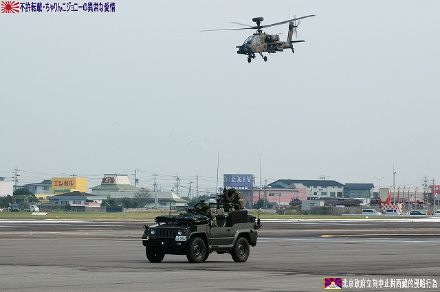 明野名物プロトタイプ機塗装のOH-1初号機!! …え、違う?(^。^;) 気が済んだ所で(^_^;)本命であるアパッチの写真。 観閲(大編隊)飛行の最後尾で3機が飛行した。 (右)観閲飛行を終え、先に着陸したAH-1Sコブラとこれから着陸せんとするAH-64Dアパッチ。 観閲飛行に参加したアパッチ各機。 (左)2号機(手前)と初号機。 (右)初号機。航空学校所属機は、機体番号下2桁を白字にてペイントしてある。 (左)3号機はロングボウ(ミリ波)レーダーなし。 (右)このほか、5号機が地上展示されていた。 手前のテーブルには30mm機関砲弾が置かれている。 (左)模擬戦の終盤にもアパッチ登場。最後に美味しい所をみんな持っていった?! (右)模擬戦には2号機が参加していた。 アパッチの他で気になった物 (左)ドリル演技を実施した少年工科学校の皆さんが携行していたM-1ガーランド。ピッカピカです。(演技前、一般公開エリア内で待機中に撮影) (右)模擬戦に登場した「敵ゲリラ」の皆さん。 旧迷彩・64式小銃・重機装備のジープ…昭和の自衛隊な感じが良かったです。 …と言う事で詳細はまたそのうち。 現地でお世話になった皆様、有り難うございました。 本投稿及び添付した写真は私ちゃりんこジョニーの著作物であり、他のサイト・掲示板及びブログ等への無断転載を禁じる。 特に、悪質パクりブログ「中華人民共和国萬歳」改め「JMSDF rie」を運営していた、支那人窃盗常習犯sunbinsiftに対しては強く抗議する。 PR ![]()