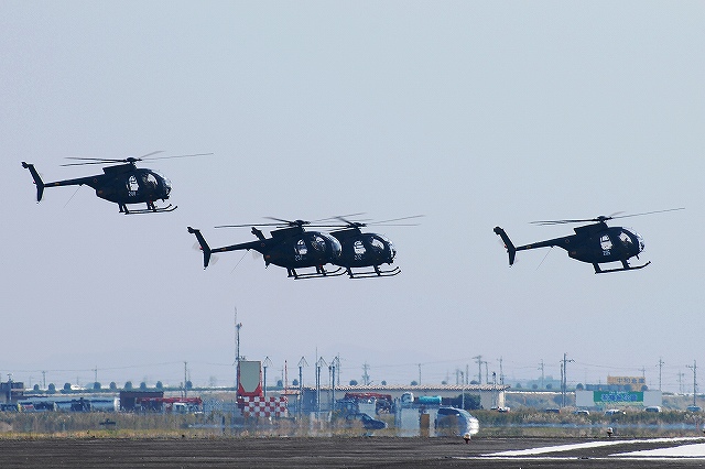 (左)AH-64Dアパッチ。 手前の機体はロングボウレーダー付き、奥の機体はレーダー無しで増槽を下げている。 (中)UH-60JとOH-1 (右)OH-1初号機と弐号機 (左)AH-1Sコブラ (中)輸送ヘリ各種。 CH-47チヌークは初期タイプのJ型(左隅)と航法レーダー及び大型燃料タンクを装備したJA型が各一機飛んでいたのね。 (右)着陸した各機はホバータキシーにて観客席前を移動していったが、ダウンウォッシュが強烈なチヌークだけは接地してタキシングしていった。 つづいて、「明野レインボー」による展示飛行。 (左)「明野レインボー」は明野航空祭の為に臨時編成されるチーム。今年は、OH-6D×4機+OH-1/AH-1S/AH-64D各1機…と言う編成だった。 (中・右)観客席正面より進入しブレイクする。 AH-1Sコブラの機動飛行 (左)「ソロ」の機動飛行の合間に、OH-6D×4機による編隊飛行が披露された。 (右)OH-1の機動飛行 AH-64Dアパッチによる機動飛行 演技を終えて会場正面より着陸する各機 ホバータキシーにて移動していった。 つづく PR