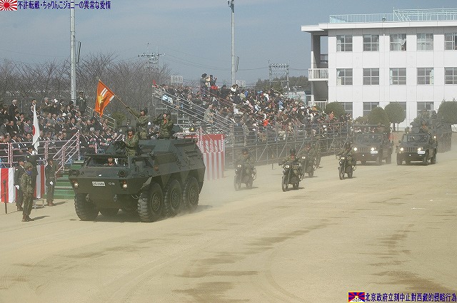 × [PR]上記の広告は3ヶ月以上新規記事投稿のないブログに表示されています。新しい記事を書く事で広告が消えます。 写真は82式指揮通信車。停車位置等からして模擬戦に「敵装甲車」として登場しそうやな~?と邪推しながら撮影。(正解でした) グリーン一色の塗装と、運転席窓の装甲板を降ろした状態なのが珍しい。 運転席屋根上の台形の物体は送風機。車長のハッチにはM2 12.7mm重機関銃を装備している。 他駐屯地より展示の為にやってきた車両が会場横などにに停車していた (左)第10戦車大隊(今津)の74式戦車。観閲台横の観客席のさらにその横に停まっていた。 (右)こちらは第10高射特科大隊(豊川)の81式短SAMや93式近SAMなど (左)観閲行進のために待機中の施設科車両の横を、観閲式典に参加の隊員の皆さんが隊列を組んで通過してゆく。 (中・右)会場横に停車していた大型トラック群。 「教習車」とのプレートが取り付けられていた。 (左)式典開始時刻が近付き、隊員の皆さんが一斉に入場してくる。 (右)春日井駐屯地司令による巡閲。 観閲行進。徒歩部隊による行進は実施されず、春日井駐屯地所属の各種車両が観閲行進を実施した。 (左)大型トラック(3 1/2tトラック)がベースのタンクローリ。 (右)特大型トラック(7tトラック)。 (左)中型トラック(2 1/2tトラック)がベースの救急車。 (右)大型トラックの荷台に乗せられているのは野外手術システム(の一部)。このようなコンテナを搭載した大型トラック4両及び牽引されるトレーラで構成される。 (左)この大型トラックは災害出動用の機材を搭載したコンテナを積んでいる。 (右)81式架柱橋車。 実際の敷設作業もこのようにトラックや装甲車に牽引され走行しつつ行うそう。 トラックやら(写真は割愛しましたが)トレーラやらが多数走行し後なので、偵察隊の車両が登場する頃には砂埃が大変な事に…(^。^;) (右)偵察バイクとパジェロ(1/2トラック)。 (左)87式偵察警戒車。 (右)観閲行進に参加したジープは、この即応予備自衛官が搭乗した車両のみ(2両登場)だったよう。 …つづく コネタ(では済まない物も有ります) ・四日市-セントレア間の航路 地元の新会社が引継ぎへ 現在セラヴィ観光汽船は、同社が運行していた四日市-セントレア間の航路の運営などを、四日市の企業経営者らが設立した新会社YALへと譲渡する方針だそう。 記事によれば… > 運航に使う船や名古屋市などにあるセラヴィ観光汽船の設備を購入、運航スタッフは全員引き継ぐ方向で詰めの交渉を進めている。 …とのことなので、名古屋港の遊覧船もYALが引き継ぐのかな? ・経営難の名古屋港イタリア村 クレールが継承に名乗り クレールはイタリア村内にて結婚式場を営業している。 引継ぎに当たっては、商業施設再生のノウハウを持つ企業数社と連携する計画だそう。 ・チベットで暴動 当局の発砲で複数の死者? 報道各社の └(´Д`)┘ 本投稿及び添付した写真は私ちゃりんこジョニーの著作物であり、他のサイト・掲示板及びブログ等への無断転載を禁じる。 特に、かつては「中華人民共和国萬歳」現在は「異常な愛情」と言う名のパクりブログを運営している、支那人窃盗常習犯sunbinsiftに対しては強く抗議する。 PR |