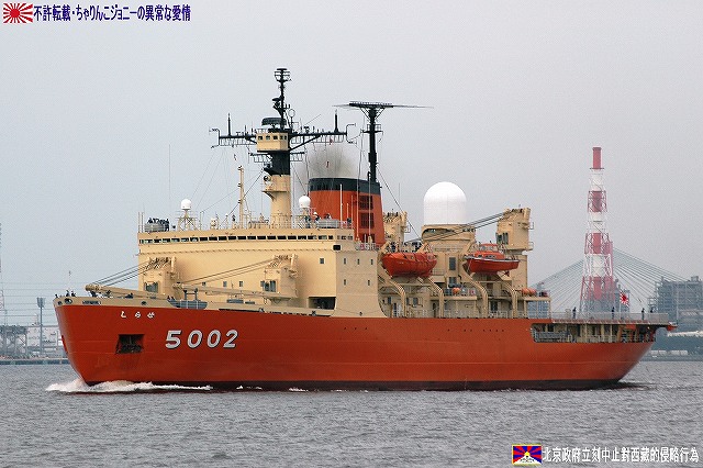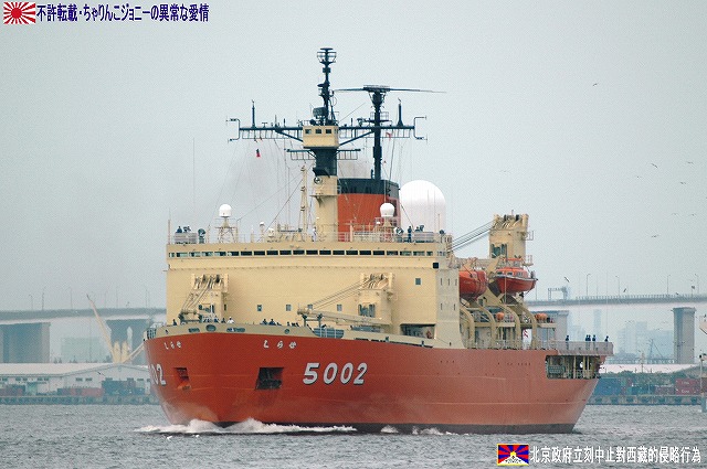 …と言うことで高潮防波堤の先端部分へ到着。時折行き交う船舶を眺めつつ「しらせ」の通過を待つ。 (左)高潮防波堤の「外」にあるLMG(液化天然ガス)ターミナルより出港してゆくLMGタンカー。 上空を行くのはセントレアへアプローチ中の旅客機。 (右)出港してゆくコンテナ船 飛行甲板には搭載ヘリが引き出されており、この後セントレア沖付近にて離船、セントレア周辺を哨戒飛行(?)していた。 エラい人でも来ていたのかな?(あくまで推測ですが…) さらに待つことしばし。本命「しらせ」のお出まし。 飛行甲板に展示されていた搭載ヘリは格納庫へしまわれていた。 先代の砕氷艦「ふじ」は名古屋港にて保存展示されているが、「しらせ」はその巨体故か今の所引き取り手の立候補が無く、このままでは引退後最悪解体の運命だとか…。 となれば、ワタシにとってはこれが「しらせ」を見る最後の機会の可能性が高く。万感の思いを込めてその勇姿を見送った 最後になりましたが、当日お世話になった皆さん有り難うございました。 ・オマケ1 「しらせ」名古屋入港中にこんな事が有ったそうです。 海に飛び込んだ女性を迅速救助 南極観測船「しらせ」自衛官に感謝状@中日新聞 「しらせ」は今年8月にも館山沖にて人命救助(漂流していた男子高校生2名を救助)しています。 DD103「ゆうだち」(前列中央の艦…って3回目にして雲行き怪しくなってきたな~(^。^;)) 本投稿及び添付した写真は私ちゃりんこジョニーの著作物であり、他のサイト・掲示板及びブログ等への無断転載を禁じる。 特に、悪質パクりブログ「中華人民共和国萬歳」改め「JMSDF rie」を運営していた、支那人窃盗常習犯sunbinsiftに対しては強く抗議する。 PR