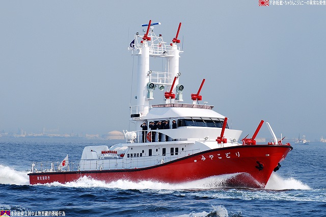 × [PR]上記の広告は3ヶ月以上新規記事投稿のないブログに表示されています。新しい記事を書く事で広告が消えます。 画面左隅に見切れているのは、今回も観閲船を勤めた横浜海上保安部所属のヘリ2機搭載型巡視船PLH22「やしま」。 その他福岡海上保安部所属の1機搭載型巡視船(「おおすみ」と同型)PLH06「ちくぜん」の3隻が晴海より見学者を満載して出港した。 場面は一気に飛んで羽田沖、東京灯標付近の海域。ここで晴海より出港した「おおすみ」「ちくぜん」「やしま」の3隻と、横浜より出港したPL31「いず」(3500トン型巡視船 横浜)が合流し、先導船「いず」・観閲船「やしま」・2番船「おおすみ」・3番船「ちくぜん」の順にて観閲船隊の隊列を作る。 (右)晴海を一番最後に出港した「やしま」が、先行する「おおすみ」と「ちくぜん」を追い越しにかかる。背後には羽田を離陸したANAのB777。 ・船艇の観閲式 受閲船隊の全船艇を紹介すると長くなるので(アルバムのほうでするかな?)、ここではこの後の展示訓練にあまり出番が無かったものなどを中心にその一部をご紹介。 (左)PLH31「しきしま」(ヘリ2機搭載型巡視船 横浜)。 プルトニュウム輸送船護衛の為に建造された海保のみならず世界的に見ても最大級の巡視船。 (右)PLH01「そうや」(ヘリ1機搭載型巡視船 釧路)。 砕氷能力を持つ巡視船。先代の「宗谷」は初代「南極観測船」として知られる。 今回乗船させてもらった「おおすみ」などのヘリ1機搭載型巡視船は、本船より砕氷能力を除くなどした準同型船だそう。 有る意味ワタシ的今回の目玉、PL123「こしき」(1000トン型巡視船 鹿児島)。1000トン型巡視船が好きなんですわ。 (右)「こしき」は警備実施等強化巡視船に指定されているので、その登舷礼は大楯等を装備したスタイルで実施された。 背後に見えるのは船首に装備された40mm単装機関砲。米海軍により第二次世界大戦に使用されたというオープントップ式の火砲で、射撃は目視照準にて行うそう。 (左)HL01「昭洋」(測量船 本庁海洋情報部) 各種測量及び観測を行う船。 (右)LL01「つしま」(航路標識測定船 本庁交通部) ロラン等電波標識の動作を確認する船。 (左)PM23「おいらせ」(350トン型巡視船 青森) 近年海保がその整備に力を入れている、ウォータージェット推進による高速船の一種。 (右)PS04「きりしま」(180トン型巡視船 宮崎) 高速特殊警備船とも呼ばれるタイプ。3基のウォータージェット推進により40kt+αの高速を発揮するといわれている。 ・関係機関船艇パレード (左)われらが海上自衛隊代表、護衛艦DD122「はつゆき」。 (右)水産庁の漁業取締船「東光丸」。煙突の「水」を象ったマークが特徴的。 (左)横浜税関の監視艇「つくばね」 (右)千葉県警の警備艇「ぼうそう」 (左)東京消防庁の消防艇「みやこどり」 放水銃6基の重装備。 (右)日本水難救済会東京救難所の「曙光」 背後に見えるのは千葉市消防局の消防艇「まつかぜ」、この後実施される一斉放水展示訓練参加のため待機中。 ・外国海上保安機関船舶パレード 今年の「海外ゲスト」はロシア国境警備局の「チュコトゥカ」。 (右)外洋タグボート然としたスタイルだが、ブリッジ前方に機関砲を二門装備している。 …つづく 本投稿及び添付した写真は私ちゃりんこジョニーの著作物であり、他のサイト・掲示板及びブログ等への無断転載を禁じる。 特に、かつては「中華人民共和国萬歳」現在は「異常な愛情」と言う名のパクりブログを運営している、支那人窃盗常習犯sunbinsiftに対しては強く抗議する。 PR