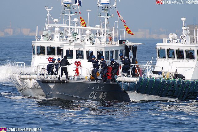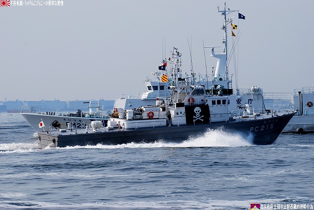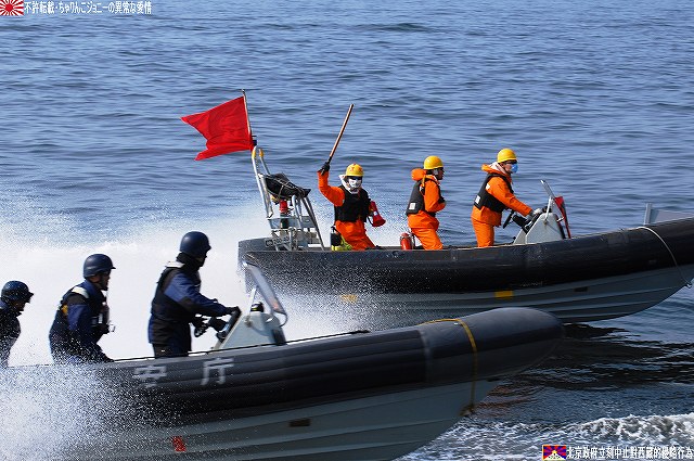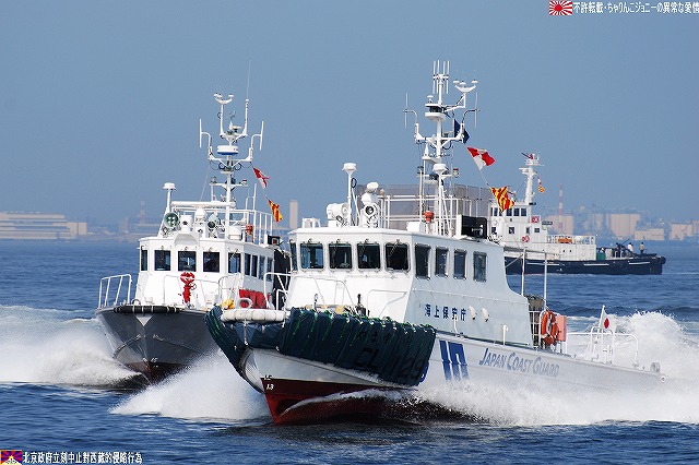 × [PR]上記の広告は3ヶ月以上新規記事投稿のないブログに表示されています。新しい記事を書く事で広告が消えます。 今年は洞爺湖サミットが有る為、「サミット対策」として海上規制及びテロ鎮圧訓練が展示されました。 ・サミット対策(海上規制)訓練 (左)侵入行為及び警備妨害行為を働く「抗議船」(複合型ゴムボート)をMH806「わかわし」(スーパーピューマ 羽田)及び複合型ゴムボートでで追跡中。 (右) この後「公務執行妨害により逮捕・制圧」されちゃいました。 (左)つづいてCL48「しおかぜ」(川崎)演じる「抗議船」が登場、CL129「やまゆり」(横浜)に針路を規制される。 (右)「長物」を振り回し抵抗する「抗議船」の乗員。 巡視艇の船上では、楯を手にした乗員が対応中。 (左)やりたい放題の「抗議船」から、今度はCL38「しゃちかぜ」(20メートル型巡視艇 名古屋)へ火炎瓶(に見立てた発煙筒)が投擲される。 (右)「やまゆり」に火炎瓶命中。本日2度目(^_^;)のキノコ雲が上がる。 (左)これに怒った(?)海保側は本気で(??)追跡開始。 「やまゆり」の船首付近には、突入に備え隊員が待機中。更にその後方には神奈川県警の警備艇「しょうなん」も見える。 (右)「しゃちかぜ」と「やまゆり」で「抗議船」を挟み撃ちにし隊員が突入。拳銃を向けられた抗議船乗員は降伏した。 ・サミット対策(テロ鎮圧)訓練 (左)テロ被疑船の針路を規制すべく、前方から進入して来た:PM23「おいらせ」(350トン型巡視船 青森)とスーパーピューマー「わかわし」。 後方には「発光信号及び旗りゅう信号にて停船命令を発する役」の巡視船「しきしま」が見える。 (右)「テロ被疑船」として登場のPC215「たつぐも」(30メートル型巡視艇 対馬)。 後方の「しきね」(1000トン型巡視船 横浜)は展示海面の警備船だったらしく、訓練などには登場せず。 (左)「わかわし」及び高速特殊警備船「かむい」(江差)「きりしま」(宮崎)の追跡を受ける「テロ被疑船」。 (右)「おいらせ」にその針路を規制される。 (左)「かむい」の20mmバルカン砲がこちらを指向している。 (右)上空に向けて威嚇射撃中。うっすらと発射煙が…みえるかな? …まだつづく。 本投稿及び添付した写真は私ちゃりんこジョニーの著作物であり、他のサイト・掲示板及びブログ等への無断転載を禁じる。 特に、かつては「中華人民共和国萬歳」現在は「異常な愛情」と言う名のパクりブログを運営している、支那人窃盗常習犯sunbinsiftに対しては強く抗議する。 PR