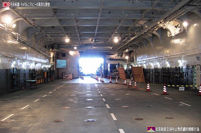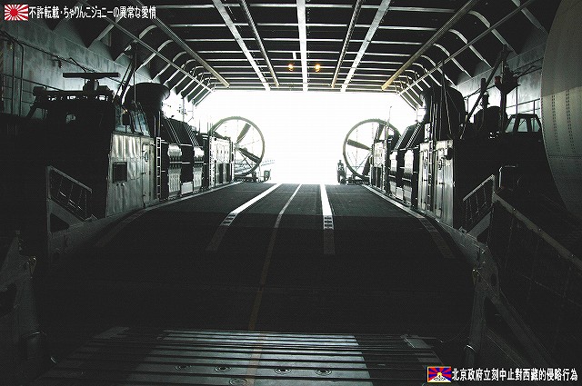 最初は「ヒコーキ屋」としてミリタリー趣味の …と言うことで、こんな日に限ってムダに航空祭日和な晴天に恵まれた(勿論天気が良いに越した事は無いです、ハイ)堺港大浜埠頭(^_^;) (左)実はこの写真、午前の公開終了後の帰り際に撮影したので艦上や埠頭に殆ど人影が有りませんが。実際の所、見学者の数はそれほど多くは有りませんでした…もったいない!! (右)後部ランプ御開帳状態。御本尊(?)のエアクッション艇が見える。 (左)前方より。 (右)画面右端のテントにて手荷物検査を受けた後、サイドランプより乗艦し見学開始。 このサイドランプは90式戦車も通過できるそう。当然左右両サイドに装備されている。 (左)艦内格納庫中ほどより後方を望む。 画面奥が明るいのは後部ランプが開け放たれている為。つまり、車輌甲板より水平移動でLCACへと車輌等を搭載できるということ。 実はこの写真も午前の公開終了間際に撮影したものなので、見学客が写り込んでいません。 (右)壁面には固縛用のチェーンがズラリ。 (左)艦内後部には2隻のLCAC(輸送用エアクッション艇)を搭載。 この写真は1隻目の後部より2隻目を撮影した物。LCACは1隻目の艇のみ公開されていた。 (中)右舷側前方に有る司令制御モジュール(要するに操舵室)の内部。船と言うより航空機のコクピットに近い印象で、実際乗員の方もパイロット(ここは米海軍式に「エビエーター」と言うべきか?)用のツナギにパイロット用のヘルメットと言う出で立ちで乗り込むよう。 (右)こちらは左舷前方にある人員装備モジュールの内部。こちらも航空機(輸送機)のような座席が用意されていた。 エンジン起動時は「外」に出てはいけないそう。 この他に多目的コンテナを搭載すれば最大180名の人員を搭載可能だそう。最大搭載量は50t(90式戦車1両分)。 (左)艦内の陸自隊員用寝台。 「B寝台」にも程があるな~。ベットの幅は計りませんでしたが、20系寝台車より窮屈そう?? ちなみに「おおすみ」型の人員輸送能力は330名。 (右)LCACの発着を管制する所(正式名称失念)よりLCAC甲板の搭載状況を撮影。 いよいよ憧れの(笑)全通甲板へと登る。 (左)画面右手のハッチより最上甲板へ出た。 (右)最後尾のセンターライン上より前方を撮影。 最上甲板の後半分が飛行甲板で、2機のヘリコプターが同時に発着可能。 とは言え格納庫甲板など航空機の運用に必要な支援設備は持たないため、一時的な離発着は可能でも恒久的な航空機の運用能力は無い…つまり空母ぢゃないよ!と言う事(^_^;) その前後には20mmCIWSが装備されているほか、15tクレーンも有る。 煙突よりの排気でエエ感じにグラデーションがかかって煤けているマストは、ステルス性を意識した形状をしている。 マスト頂部には洋上の航空機運用には欠かせない、TACAN(戦術航法システム)の円盤状のアンテナが乗せられている。 (左)艦橋後部より飛行甲板の状況を撮影。 20mmCIWSの左下。2つ有る台車のうち右側の一つが、後部のエレベータの上に乗っている。後部エレベーターは15tまで搭載可能。 (右)艦橋より前方の甲板の状況を撮影。全通甲板のうち前半分は「車輌甲板」と呼ばれる。 前方中央部の白く囲まれている場所は、前部のエレベータ。こちらの搭載能力は20t。 ブリッジ内部の状況。 広さは普通の護衛艦と同じぐらいかな? 「おおすみ」は三井玉野で建造され、1998/3/11に竣工。以降… 1999年 トルコ大地震被災者向けの仮設住宅輸送 2002年 東ティモールへのPKO部隊の輸送 2004年 イラクで陸自派遣部隊が使用する車輌等の輸送 …が艦歴の中に含まれている。 埠頭では、信太山駐屯地の陸自37普通科連隊より軽装甲機動車と高機動車も展示されていた。 最後になりましたが、当日お世話になった皆様有り難うございました。 m(._.)m 本投稿及び添付した写真は私ちゃりんこジョニーの著作物であり、他のサイト・掲示板及びブログ等への無断転載を禁じる。 特に、悪質パクりブログ「中華人民共和国萬歳」改め「JMSDF rie」を運営していた、支那人窃盗常習犯sunbinsiftに対しては強く抗議する。 PR