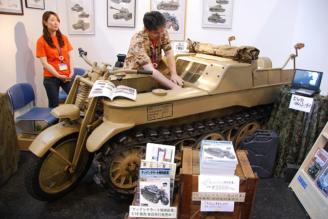 時節柄今年はないかな?と思っていた陸自車両の展示。 現地へ行ってみると中型トラックと偵察バイクが展示されていました。 中型トラックは災害派遣の表示をつけた状態で展示。 その他、災害派遣の現場で撮影された写真等が展示されていました。 (左)バンダイのブースに展示されていたザク頭。 ダメージを受けた表現が為されていた (右)アオシマのブースに展示されていたホンダNSR250R ファインモールドのブースに展示されていた1/4トン4×4トラック モデラーズギャラリーに展示されていた、ガンダムの世界において地球連邦軍が使用していたジープ的多目的車両「ラコタ」 ベース車両はパジェロだそう (左)機銃座にはMINIMIを搭載 (右)リジーナ対モビルスーツミサイル (左・中)同じサークルが昨年製作した、ジオン軍の多目的車両サウロペルタ。 こちらは同じ三菱車でもiがベース (右)カマド社のブースに展示されていたドイツ軍の半装軌車両ケッテングラード(実物)。 つづく PR