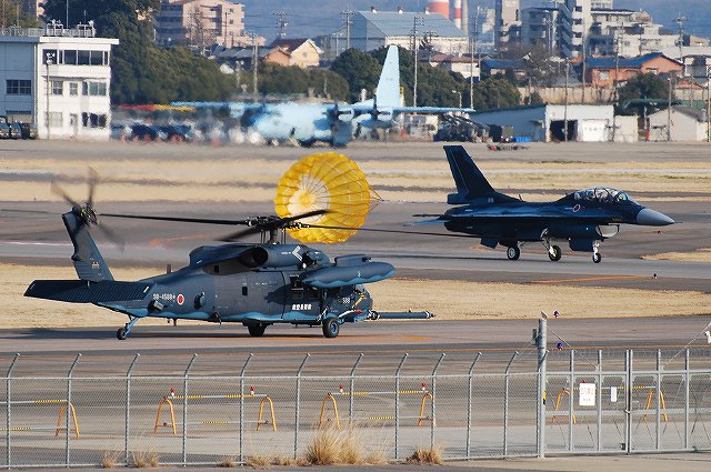 友人の車に乗せてもらい岐阜より転進。15時頃より撮影を開始しています。 (左)着いた早々に、三菱に入場中のF-2Bが試験飛行に向けて離陸してゆくところが撮れた。 (右)タッチアンドゴーなどを繰り返していたC-130H #078。 この機体は主翼付け根付近の胴体上部にコブがついている。 (左・中)空自側より離陸し、神明公園上空を通過していった海自のSH-60J#57。 (右)こちらは試験飛行から戻って三菱の工場に戻るUH-60J@海自仕様。 先日も撮影できた#66だった。 続いて受油ブーム付きのUH-60J@空自洋上迷彩。 先日と同じ#588が撮影できた。(もう一機いるらしいです) (右)1枚目の写真のF-2Bが同時に戻ってきた 離陸に際し、地上で手を振っての見送りがあったので、定期検査を終えて福井へ戻る所だったよう。 レーダーサイトなどに対して電子戦訓練を実施する、総体司令部飛行隊電子戦支援隊(入間)のYS-11EAが降りてきた。 (左)パッと見はフツーのYSのように見えるけど、良く見ると窓が殆ど無い。中はスゴイ事になってるんだろーなー。 (中)特徴的なのは右側側面。 主翼付け根後方に発電用の補助動力装置が収まっているという膨らみが有る。 (右)出力強化のためエンジンが換装されており(退役したP2Jのものらしい)、プロペラもオリジナルの4枚から3枚の物に変更されている。 民間機の写真を3枚纏めて… (左)ダイヤモンドエアサービスのビーチクラフト。 この機体は元海保の物だそうで、言われてみれば塗り訳のパターンが海保っぽい感じ。 (中)J-AIRのエンブラエルE170初号機。 整備中なのか機首のレドームが開いている。 (右)広島テレビのEC135。 中日本航空で整備中だったよう。 2機のC-130H@緑色がオーバーヘッドアプローチの後着陸した。 帰路、名鉄小牧線より小牧基地までの専用線(引込み線)の廃線跡へ立ち寄ってみる。 (左)春日井-牛山間に有る分岐点付近。写真奥が名鉄小牧線の線路。 この付近の小牧線には、単線時代列車行き違いのための信号所が於かれてあったが、当然ながら今はただの複線区間の一部になっている。 (右)ほぼ同地点から基地の方を望む。 この引込み線は燃料等の輸送ため1968(昭43)年まで使用されたとのことだが、レールや架線柱は今でもほぼそのまま残っているようだった。 当日現地にてお世話になった皆様有り難うございました。 ●オマケのイベント情報 陸上自衛隊HPに4月のイベント情報が出ていましたので、その他の情報も含めイベント情報欄を更新してあります。 ※情報提供:Bさん。いつも有り難うございます。 本投稿及び添付した写真は私ちゃりんこジョニーの著作物であり、他のサイト・掲示板及びブログ等への無断転載を禁じる。 特に、かつては「中華人民共和国萬歳」現在は「異常な愛情」と言う名のパクりブログを運営している、支那人窃盗常習犯sunbinsiftに対しては強く抗議する。 PR |