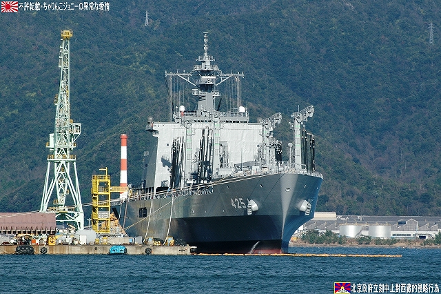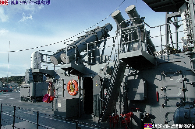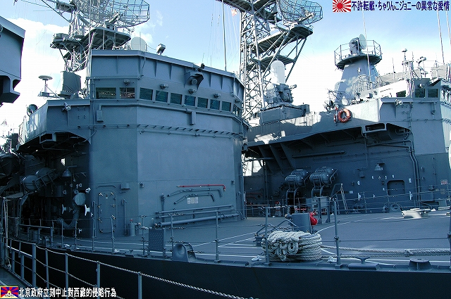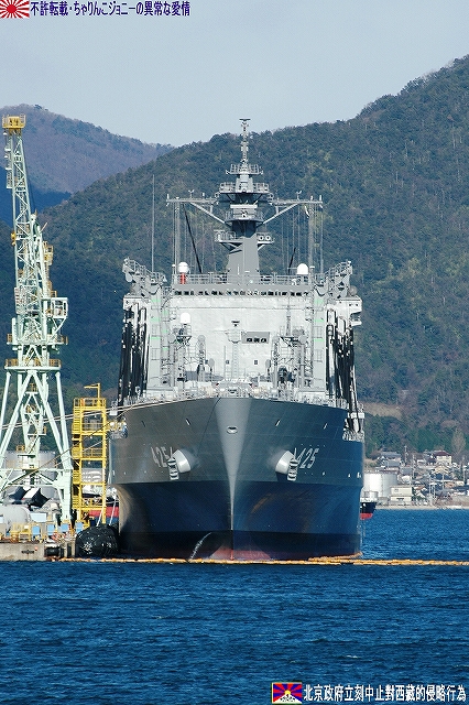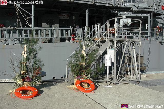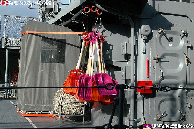 ・公開されていた「みねゆき」上甲板より「あぶくま」等を撮影 土日祝日に公開されている海事舞鶴基地北吸桟橋だが、日によっては当直艦の上甲板が公開されており、この日は護衛艦「みねゆき」が公開されていた。 (左)「みねゆき」入り口の門松。 (右)一緒に飾られていた浮き輪は2008年スペシャル。 「はつゆき」型護衛艦は何度もご紹介しているので、ここでは乗艦こそしてない物の初めて間近に見たと言うことで、此処から先は隣に停泊していてた「あぶくま」の写真をご紹介。 「あぶくま」型は地方隊用の小形護衛艦(DE)として製造されたものだが、前級の「いしかり」型DEが小形に過ぎたため、武装面でも外観でも「はつゆき」型護衛艦に匹敵するものになっている。 (左)「あぶくま」の艦橋。 「はつゆき」型に有って「あぶくま」に無い物の一つが対空ミサイル。 5インチ砲と艦橋の間に有る「空き地」には、将来個艦防御用の対空ミサイル発射装置であるRAMを搭載可能とのことだが、現在の所その予定は無いと言う。 (右)「空き地」の部分をよく見ると、RAM搭載用の台座(?)と思われる物が見える。 そのアスロックランチャーは艦体中央付近、2本の煙突の間に設置されている。この配置って旧海軍の駆逐艦の魚雷発射管の位置みたいだなー、ロケットにて魚雷を投射するアスロックのランチャーもある意味魚雷発射管見たいなものだしね (左)後部煙突のさらに後部には対艦ミサイルの発射筒が装備されている。 (右)その基部付近に除雪用のスコップがぶら下げられていた。この日はたまたま天気がよかった物の、本来は「雪国」だもんな~。 前述のとうり対空ミサイルを持たない「あぶくま」型なので、目下の所はこの20mmCIWSと5インチ砲のみが対空兵装である。 20mmCIWSの後方には飛行甲板が有るが、格納庫は持たないのでヘリの運用能力は無い。 沿岸警備や哨戒に用いる為相当数の建造が予定されていたと言うが、冷戦終結とともに計画が見直され6隻のみの建造にとどまっている。 規準排水量:2,000t 全長:109m 全幅:13.4m 深さ:7.8m 喫水:3.8m 主機:ガスタービン/ディーゼル各2基 2軸 馬力:29,000PS 速力:27kt 主な兵装:20mmCIWS×1 76mm速射砲×1 対艦ミサイル装置一式 アスロック装置一式 3連装短魚雷発射管×2 定員:120名 ・多分(新)「しらせ」(^。^) よく見ると、クレーンの足元付近に煙突と思われる構体が2つ有る。 ・ましゅう ここよりは、北吸桟橋などより撮影した補給艦「ましゅう」の写真を纏めて… また本級は集中治療室などの医療設備も有しているので、前述のヘリ運用能力とあわせて災害出動等にも対応できる。 (左)艦橋構造物及びマストなどはステルス性を考慮した形状をしている。 (中)6個所有る給油ステーションはモノポール型を採用している。正面より見ると従来の門型と比べ艦橋より前方の視界が良好さうなのがわかる。 「ましゅう」型は現在AOE425「ましゅう」とAOE426「おうみ」の2隻が就役しており、インド洋における洋上補給任務再開にあたっては、「おうみ」が派遣される予定だそう。 規準排水量:13,500t 全長:221m 全幅:27.0m 深さ:18.0m 喫水:8.0m 主機:ガスタービン2基 2軸 馬力:40,000PS 速力:24kt 定員:145名 ・舞鶴より撤収 最後に基地正門付近に置かれている護衛艦「あまつかぜ」の主錨を撮影。主錨の周囲に埋められているのは、3インチ砲の砲弾(黒い奴)とヘッジホックの弾体(白い奴) 「あまつかぜ」は海自初のミサイル護衛艦(DDG)である。 1965年2月15日就役/1995年11月29日除籍。除籍後は若狭湾沖にて対艦ミサイルの標的艦を勤め、沈められた。 (左)歩き疲れたので、東舞鶴駅まではバスを利用することに。 (右)バス停のそばにはこんな表示が… 舞鶴にとって海自基地は、貴重な産業であるとともに観光資源でも有る。 …と言うことで、舞鶴配備の艦艇について詳しく知りたい方はこちらをご参照。 ・をけら 軍事や鉄道の話題と共に、京都の情報をブログの柱とされている北大路機関のはるなさんの提案により、大晦日の恒例行事である「をけら参り」の見学及び撮影するために立ち寄りました。 JR福知山線~山陰本線~京都市営地下鉄東西線と乗り継ぎ到達した頃には辺りは真っ暗。 参拝者が願い事を書いた札木を焚いて起こされる「をけら」日を火縄に移して家に持ち帰り、その火にて雑煮を作り食すれば新しき一年を無病息災に過ごせる…と言うのが「をけら参り」の概要。 それは良いのだが、「をけら火」が焚かれている灯篭の回りは参拝者とその模様を撮影しようとするカメラマンが取り囲み、撮影どころか近付くのも容易ではない状況だった。 参拝者が火縄に移した「をけら火」を消さないように、火のついた火縄をクルクル回す情景が見られ、あ~これが京都の歳末なんだな…って、難燃性のカケラもないナイロン製のパチモンフライトジャケットを着用している身としては、 下手こけば「人体発火事件」(笑) に繋がりかねない危険な状況だよな??…と言うことで、所期の目的も果たした事だし早々に撤退を決
