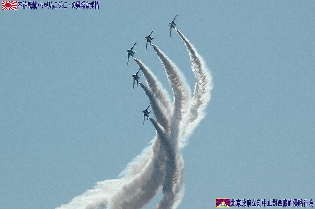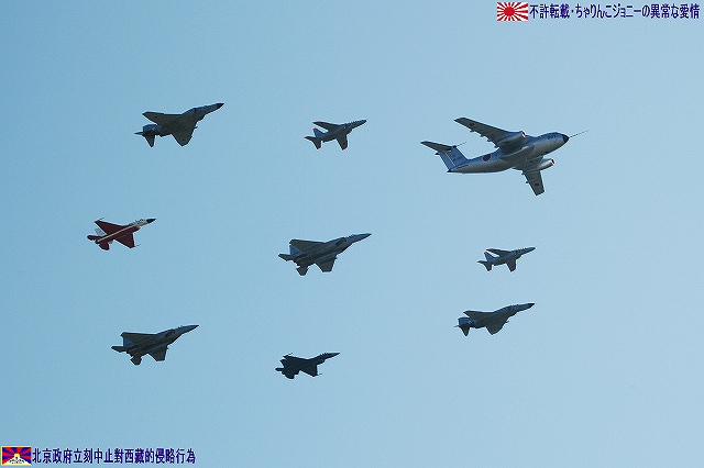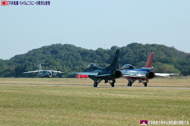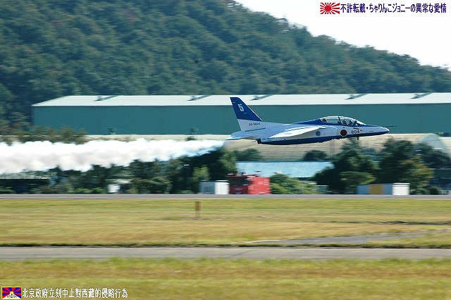先ずは岐阜基地航空祭名物、飛行開発実験団保有各機による異機種大編隊。 (左)最初に銀色塗装のC-1輸送機初号機が離陸。 (右)続いてT-4練習機が離陸。 先に離陸し、飛行場の周りを周回していたC-1へ追いつき、各務ヶ原生まれ(共に川重製)の機体による編隊飛行を披露した。 (左)離陸するF-4ファントム (右)機動飛行も実施した (左)着陸の為ブレイクするF-15イーグル。エアブレーキを開いて減速中。 (右)着陸したT-4の3並び。 (左)着陸の為ブレイクするF-4ファントム。 (右)着陸後タキシングする2機のF-2と、着陸したC-1。 展示飛行のラストは航空祭の華ブルーインパルスの曲技飛行。 (左)5番機の低い離陸に観客がどよめく。 (右)6番機は離陸直後ギアダウンしたままロールを打つ「ダーティーロールオンテイクオフ」を行う。 雲一つない快晴の下、フルショーを実施した。 着陸後、タキシングする各機。 最後になりましたが、当日現地にてお世話になった皆さん有り難うございました。 本投稿及び添付した写真は私ちゃりんこジョニーの著作物であり、他のサイト・掲示板及びブログ等への無断転載を禁じる。 特に、悪質パクりブログ「中華人民共和国萬歳」改め「JMSDF rie」を運営していた、支那人窃盗常習犯sunbinsiftに対しては強く抗議する。 PR