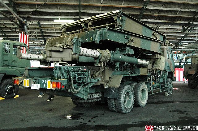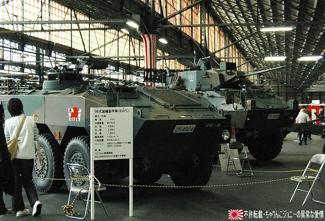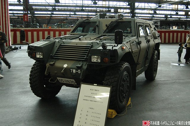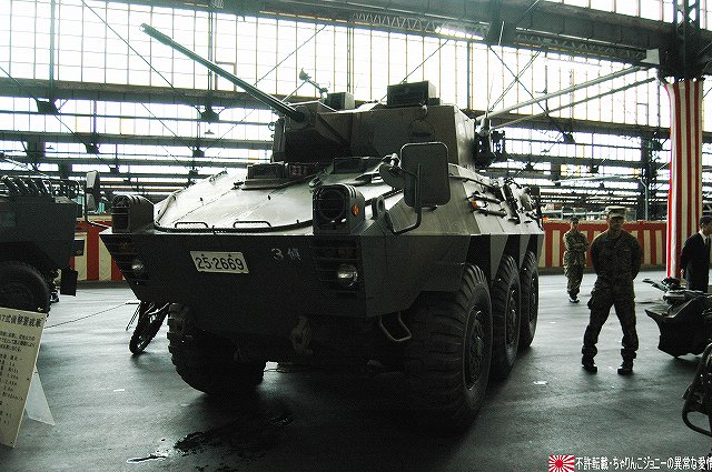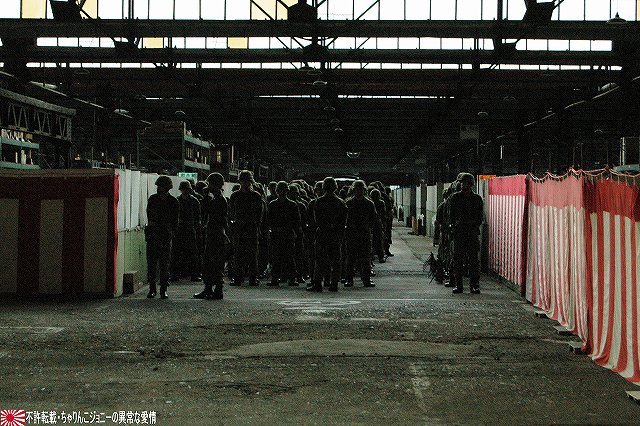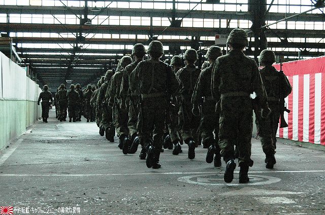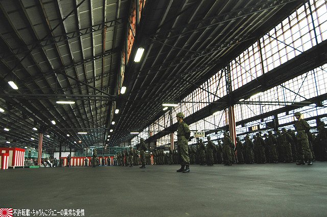 桂駐屯地は実戦部隊の駐屯こそ無いものの、中部方面後方支援隊本部を始め参加の後方支援部隊が駐屯しており、陸自中部方面隊に於ける後方支援の一大拠点である。 特徴は、1942年にに三菱重工業京都発動機製作所として建設された巨大なノコギリ屋根の工場を、今日においても車輌等の整備工場や部品などの倉庫として利用していることである。 実はワタシ、幸か不幸かここまで完璧に雨な陸自駐屯地祭に当ったことが無く、こう言うときのプログラムがどうなるのか皆目見当もつかない状態に陥っていると、今回同行させてもらったはるなさんが、案内役の隊員さんに今後の予定を質問してくれ、それによると屋内にて観閲式典を行うとのこと… よく見れば出ていた案内看板(爆)に従い、期せずして桂駐屯地名物巨大車輌整備工場の一角に足を踏み入れる。 (左)入場を前に待機中の隊員の皆さん。独特のライティングによりシルエットが浮かびあがる。 (右)入場/整列後に警備の隊員さんが「もう少し前までどうぞ」と規制線を前進させてくれ、こんな写真が撮れました。 何処までも続くかと思われるほどに巨大なこの建物は、今日新たに建築するのは建築基準法の規制により不可能なのだとか。 そんな巨大な建物のほんの一角にて式典は開催された。 大きな建物は音響効果抜群で、国旗の登壇/降壇の際に音楽隊の吹奏する国歌が大きな建物に響いた。 (デジカメの動画機能による収録したものを、アップロードの容量制限に合わせて縮小したものなので、音響のよさはサッパリ伝わらないですが、一応動画はこちら。アタマが一瞬切れてますけどね) ここで音楽隊の演奏を録音したCDとか作れば売れるかも?? 比較的広い屋内会場に装備品が並ぶ様は、まるで兵器見本市のよう? (左)92式浮橋。 重量約50tの90式戦車にも対応している。 写真のように折り畳まれた状態で輸送され、水面に落とされると自動的に展開するそう。 これを幾つか繋いで浮橋として利用できる他、単体をボートで押して艀として使用する事もできる。 (右)81式架柱橋車。 順光側に回ると、屋外展示の撮影では潰れてしまう細かいディーテルまで撮影できた。 (左)96式装輪装甲車。 (中)87式偵察警戒車。 (右)偵察バイク。 (左)軽装甲機動車。 (右)93式近距離地対空誘導弾 (左)ホーク改。屋内で見るとよりインパクトのある形やな~ (右)FH-70 155mm榴弾砲。 後方に92式浮橋。 (右)12.7mm重機関銃。 (左)64式小銃。 89式小銃は戦闘職種の部隊への配備が進んでいるが、後方支援の部隊ではまだまだ現役。 (左)屋外に展示されていた第103不発弾処理隊の車輌。 第103不発弾処理隊は中部方面隊担任区域の不発弾処理に出動する。管内には京阪神や東海地方など、戦時中は激しい爆撃にさらされた地域があるので、戦後60年以上経た今日においても出動の機会はなくならない。 (右)荷台には米国製1t爆弾(のドンガラ?)を搭載した状態で展示。 そんな時は、ハイ! ロケットレンチぃ~ (声の出演・大山●ぶ代(^_^;))。 両端の円筒状の部分に、12.7mm重機関銃用の弾を利用した火薬カードリッジを互い違いの方向にセットし、電気着火にて発火させる事で信管に固定したレンチを回転させ信管を外すのだそう。 任務の性質上、市街地など民間の目に触れる事の多い不発弾処理隊だけに、室内に貼られた不発弾処理隊のモットーには「1人ひとりが広報官」との文字があったのが印象的だった。 最後になりましたが、当日お世話になった皆様有り難うございました。 本投稿及び添付した写真は私ちゃりんこジョニーの著作物であり、他のサイト・掲示板及びブログ等への無断転載を禁じる。 特に、悪質パクりブログ「中華人民共和国萬歳」改め「JMSDF rie」を運営していた、支那人窃盗常習犯sunbinsiftに対しては強く抗議する。 PR