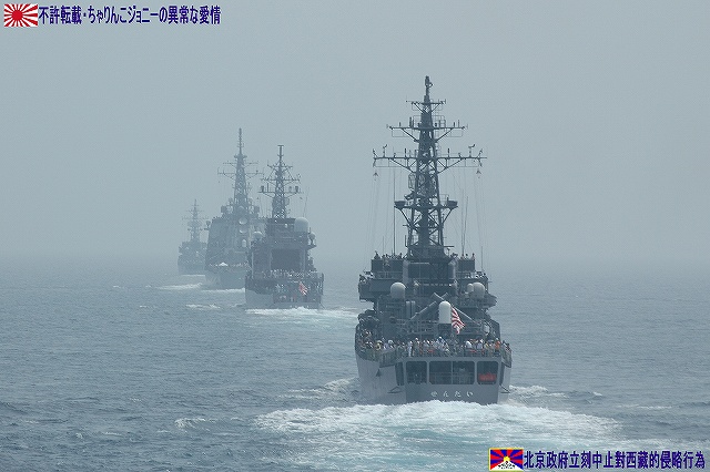 ・自衛艦敬礼 我が「はるな」を先頭とする受閲艦艇部隊は、「あぶくま」「みょうこう」「みねゆき」から成る観閲艦艇部隊とすれ違い、自衛艦敬礼を実施する。 「みょうこう」と擦れ違う。艦橋トップには舞鶴地方総監らの姿が見える。 この後「はるな」と「せんだい」は受閲艦艇舞台の後尾に付き、見学者を乗せた5艦から成る体験航海部隊を形成した。 ・潜水艦航行展示 「はるしお」型潜水艦1隻が浮上及び航行の展示を実施した。 ・ミサイル艇航行展示 舞鶴配備のもう一隻のミサイル艇PG828「うみたか」は、「ゆら」型輸送艦LSU4172「のと」とともに、若狭湾に設定された展示訓練実施海域の警戒を実施しているのが遠望出来た。 ・空砲発射 我が「はるな」は一旦隊列を離れ、他の「体験航海部隊」と並走しつつ5インチ砲の空砲発射を実施した。 写真は有りませんけど、動画ファイルをご用意しました。 ・1発目 ・2発目 その後「体験航海部隊」は180゜転舵。(舞台裏では色々とご苦労が有るのかも知れませんが)何気にこのような艦隊運動をこなす所に、.海自のれんどの高さが垣間見えたきがした。 (左)先頭を行くDE229「あぶくま」と「みょうこう」を挟んで3番艦のDD124「みねゆき」が重なった。 (右)我が「はるな」は、「せんだい」の後方に付けた。(体験航海部隊の最後尾) ・掃海艇航行展示 写真はMSC680「ながしま」。前部の銃座にも隊員がついているのに注目。 ・高速航行、IRデコイ発射 再び、舞鶴配備の海自と海保不審船キラーの競演。 海自「はやぶさ」「わかたか」と海保「はたか」が、体験航海部隊を追い越すように高速航行及び旋回運動を披露した。 我が「はるな」を追い越してゆく「はやぶさ」。 続いて「わかたか」が追い越してゆく様子は動画でドウゾ。 我が「はるな」を追い越してゆく「ほたか」。 IRデコイとは、赤外線誘導のミサイルを回避する為に投射される偽の目標の事。 ・飛行展示 霧による視程不良の為、小松基地のF-15イーグルによる飛行展時はキャンセル、厚木基地のP-3Cによる飛行展示は2機実施の予定を1機に縮小して実施された。 F-15がキャンセルで唯一の固定翼機による飛行展示だったからか、派手な機動を披露してくれた。 本投稿及び添付した写真は私ちゃりんこジョニーの著作物であり、他のサイト・掲示板及びブログ等への無断転載を禁じる。 特に、悪質パクりブログ「中華人民共和国萬歳」改め「JMSDF rie」を運営していた、支那人窃盗常習犯sunbinsiftに対しては強く抗議する。 PR ![]()