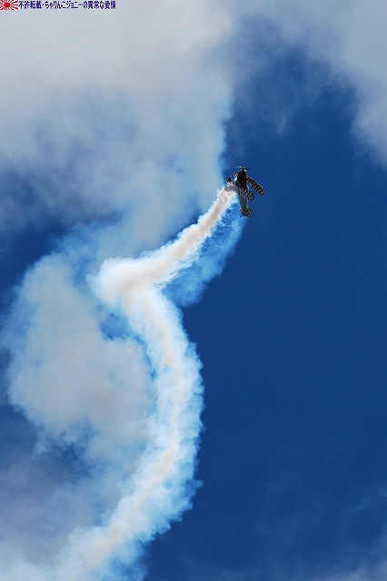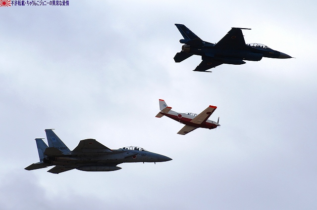 展示飛行は誘導路沿いのポイントへと移動して撮影しました。 ・オープニングフライト (左)岐阜基地航空祭名物、プロペラ練習機とジェット戦闘機の編隊飛行はオープニングフライト似て実施された。 フルスピードと思われるT-7練習機に対し、F-15とF-2はフラップ下げ/機種上げ状態で編隊を組む。 (右)機動飛行のため離陸するF-15DJ。 暗雲を背景にハイレートクライムの為引き起こし中。 (左)機動飛行を実施するF-2B初号機 (右)同じくF-15DJ 一足先に着陸したT-7 (左)現在空自が装備する戦闘機3種で傘型編隊を披露 (右)着陸を前にブレイクするF-15DJ 誘導路の角でドラッグシュートを切り離した瞬間。 (左)着陸したF-2B初号機 (右)着陸したF-15DJ ・エアロックの展示飛行 アクロ専用のプロペラ機ピッツS-2Bは大変小回りの効く機体…なので、「僻地」で撮影していたが故に微妙に遠い写真のみなのはご勘弁。 ・ブインパルスの展示飛行 基地南東方向に広がった暗雲のため、一風変ったライティングの写真が撮れた。 (右)着陸したブルーインパルス。 …つづく 本投稿及び添付した写真は私ちゃりんこジョニーの著作物であり、他のサイト・掲示板及びブログ等への無断転載を禁じる。 特に、かつては「中華人民共和国萬歳」現在は「異常な愛情」と言う名のパクりブログを運営している、支那人窃盗常習犯sunbinsiftに対しては強く抗議する。 PR