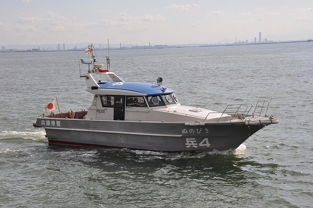 (右)同じく兵庫県警警備艇 兵4「ぬのびき」