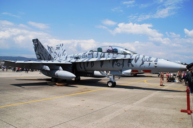 × [PR]上記の広告は3ヶ月以上新規記事投稿のないブログに表示されています。新しい記事を書く事で広告が消えます。 地元の海兵隊機を始め、陸海空軍の各種機体が展示されていました。 VMFA(AW)-224「ベンガルズ」のF/A-18Dホーネット。 部隊名に「(AW)」すなわち「全天候」を冠している飛行隊は複座タイプのホーネットであるD型を装備している。(と言うか今回単座タイプであるC型は見かけなかった) (左)#00はロービジ塗装ながら機体全体にトラ縞を配した派手な塗装。 この機体は機首にATARS(新型戦術機上偵察システム)を搭載している。(他にも搭載している機体が幾つか見られた) (中)わざわざエアブレーキを立てていたので、何かあるなー、と良く見てみたらこんな絵が描かれてました(^。^;) (右)ベンガルズの#01はフルカラーの塗装を施していた。 (左)VMFA(AW)-242「バッツ」の#01。 尾翼に大描されたコウモリのマークの他、各種レタリングのフォントも独特のものだった。 (中)VMFA(AW)-225「バイキングス」の#07。 ノーマルなロービジ塗装を施した機体。 (右)左翼端には新型のサイドワインダー(赤外線誘導の空対空ミサイル)、AIM-9X(の模擬弾)と思われるものを装備していた。 (左)地上展示機エリアから少しはなれた場所では、人海に埋もれるように2機の「バッツ」所属機が展示されていた。 (中)当該機体には各種弾薬が吊るされていた。 写真は高抵抗爆弾(の模擬弾)。 投下後に尾部が傘状に開き大きな空気抵抗を受け急減速しつつ落下する事で、低空攻撃に於ける爆弾炸裂時に自機へ被害が及ぶのを防ぐ爆弾。 (右)JSOW(シェイソウ)。 GPS誘導のクラスター爆弾で、投下後に翼を展開し滑空する。 この機体は黒を基調としたフルカラー塗装を施されていて飛行展示にも参加しており、他の飛行展示参加機同じく、エプロン地区の滑走路よりに駐機されていた。 VMA-211「Wake Island Avengers」のAV-8BハリアーII 「ウェーク アイランド アヴェンジャーズ」は、強襲揚陸艦「エセックス」に搭載されているハリアー飛行隊。部隊名は「ウェーク島の復讐者」の意。 (左)地上展示機エリアに居た#03はコクピットの公開をしていたので、「形式写真」的な写真を撮るのは困難だった。 (中)エプロン地区の滑走路よりに、ブルーインパルスを背景に駐機していた#04。この機体は「レベルIIIデモ」の予備機だった模様。 先の#03とこの#04は機首にAPG-65レーダーを取り付けた改良型で、「B+」と呼ばれる。 (右)こちらはレーダーを搭載していない原型のB型。 B+型と比べ機首が短いのがわかる。 午前中の空中給油デモなどに参加した機体のようで、エプロン地区の滑走路よりに居た。 海兵隊のKC-130J空中給油機 (左)C-130Jはエンジンの換装や6翅プロペラの装備などが行われたC-130の改良型で、KC-130Jはその空中給油機タイプ。 (右)主翼下に装備された給油ポッドと、そこから伸びる先端に漏斗状の給油口のついたホース(ドローグ)。 プローブアンドドローグ方式は構造が簡易なため海軍機に多く見られる給油方式で、ドローグに給油を受ける側の機体に装備されたパイプ(プロープ)を差し込んで給油を行う。 米海軍からの参加機。 (左)VFA-27「ロイヤルメイス」のF/A-18Eスーパーホーネット。 (右)HSL-51ウォーローズのSH-60Bシーホーク…かな? 一般公開エリアから少し離れた所に居た。機首にはFLIRを装備しているよう。 米空軍のF-16Cファイティングファルコン (左)地上展示機エリアには、在韓米軍群山基地より飛来の機体が展示されていた。 テイルレターの「WP」及び狼のイラストは、部隊の愛称「ウルフパック(狼の群れ)」に因んでいる。 (中)そのうち1機にはスナイパーポッド(?)が搭載されていた。 (右)エプロン地区の滑走路よりには、三沢基地のF-16Cが駐機していた。 太平洋空軍のデモ機とその予備機だったよう。 (左)米空軍嘉手納基地より飛来のKC-135空中給油機。 (中)米空軍横田基地より飛来のC-130H輸送機。 主翼の陰には日差しを避けるために観客が密集している。 (右)米空軍横田基地のUH-1N。 つづく。 PR