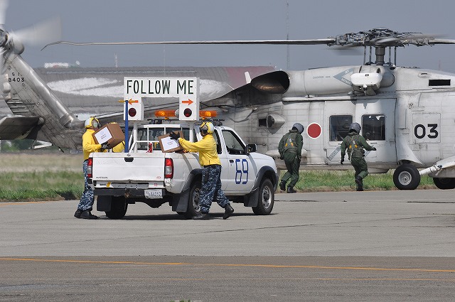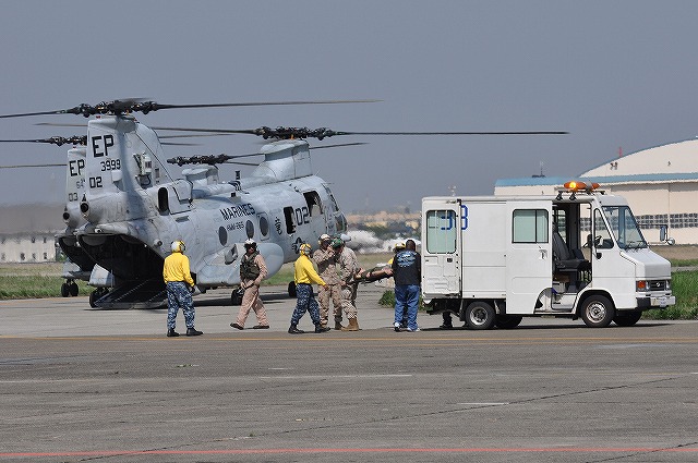 × [PR]上記の広告は3ヶ月以上新規記事投稿のないブログに表示されています。新しい記事を書く事で広告が消えます。 厚木基地春祭り後編は、飛行展示等の写真です。 と、言いつつ、最初は展示飛行以外の機体を… (左)11時過ぎに芝生の広場上空を飛んでいった従来型のF/A-18。着陸進入中だった? (中)昼過ぎに離陸していったP-2弐号機 (右)こちらもお昼過ぎに離陸して行ったF/A-18D。 ノーマークだし、日飛での検査/整備から岩国へ戻るところだった? ここからは飛行展示の写真です。 今回は「トモダチ作戦」を模した比較的小規模な飛行展示が有りました。 (左)先に離陸したP-3Cが、状況中に数回に渡ってローパスしてゆきました。 (中)海自のSH-60Kが着陸 (右)地上の支援車両を模したフォローミー・カーへ物資を受け渡していました。 (左)続いて海兵隊のCH-46Eシーナイト×2機が着陸 (中)物資及び急患輸送のデモを実施しました。 (右)着陸後タキシングするCH-46E。 HMM-265ドラゴンズのCH-46Eは、東日本大震災に際し実際に普天間より長躯展開し、「トモダチ作戦」に参加したとのことです。 オマケ:エプロン地区入り口付近では基地の消防車が展示されていました (左)いつもは米軍の消防車のみですが、今回は地元消防(手前:大和市)と海上自衛隊(奥)の消防車の展示されていました (右)日米の消防車の並び。(手前が米軍のもの) お世話になった皆様有難うございました PR