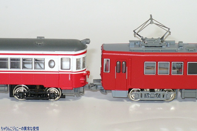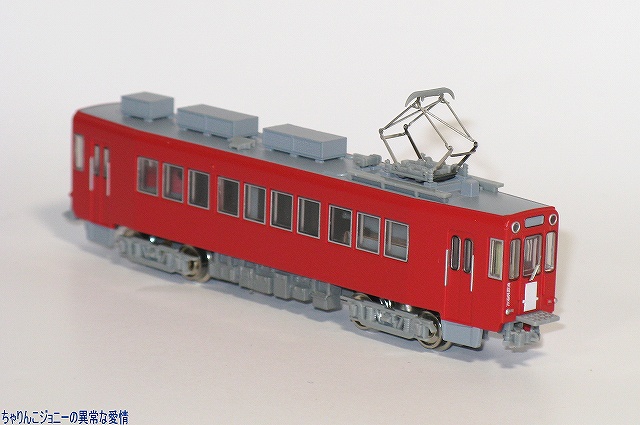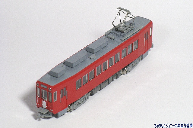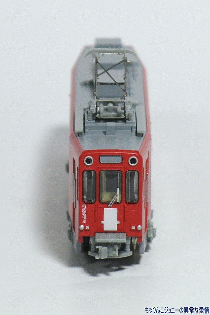 × [PR]上記の広告は3ヶ月以上新規記事投稿のないブログに表示されています。新しい記事を書く事で広告が消えます。 MOEDMOではいこれまでに多くの路面/小形電車が発売されており、今回は名鉄美濃町線にて使用されたモ600形が先日発売されました。 ・模型解説 完成品ながら、前面ワイパーのエッチングパーツはユーザーが購入後に取り付ける必要があるため、早速取り付け作業開始。 ただでさえ非常に小さいパーツなため作業が難しいのに、前面貫通扉の下にある渡り板が作業の邪魔に感じたので、一旦車体を分解することにする。 多くのNゲージ鉄道模型同様に、車体裾を軽く広げる事により床板などと一体となった下回りのパーツを抜き取る事ができる。件の渡り板は床板と一体になっていた。 上下の車体の間にワイパーのパーツが置いてあるのが判るかな? ワイパーの取り付けは車体前面中央窓の下に開けられた小さな穴に当該部品を差し込んで完了。心配な人はごく少量の接着剤似て固定した方が良いかも? ※念のため書いておきますが、これらの作業はあくまで自己責任で行ってね。 他のMODEMO製品同様、その特徴をよく捉えていると思いますがどうでしょう?(^。^) (左・中)人形は顔が命。(上方から眺める事が多い)鉄道模型は屋根上が命…と言うことで、やや上方よりの写真。 冷房装置…に見えるが実は抵抗器(理由は後述)も含め、小型車故にかやや密度の濃い屋根上の機器は一部別パーツにて再現されている。 全長約15mと路面電車としてはやや大柄な本形式は、交差点の90゜コーナーなど路面電車独特の急カーブをクリアする為に両端へ向けて車体が絞られている。 (右)…なので、独特の細長い顔つきに。 オデコ部分の行き先表示幕は使用されず、貫通扉部分のブック式方向板(行き先表示板)を使用していた。 なお、付属の方向板用のシールが貼ってないのに当該部分が白いのは仕様です。(最初から塗装されている) (左)伸縮式ではないもののTNカプラーを装備しているので、他のMODEMO製の名鉄600V線車両とも連結可能…って実際にはこんな編成は無かったですけどね。(^。^;) 同時に発売されている600形のモーター無し車と連結して、実物でも行われていた2両連結運転を再現するのが正しい使用法。 (右)方向板用のシール及び、車体番号用のインレタも付属。 ・実車解説&写真 本形式は架線電圧600V美濃町線(路面電車)から同1500V各務ヶ原線(通常の鉄道線)の新岐阜駅へと直通する為に1970(昭45)年に6両が製造された電車。 永らく美濃町線の主力として活躍していた本形式だが、新型車両の配備や路線の縮小に伴い次第に勢力を減衰し。最後まで残っていたのはこのモ6061両のみ。 現役時代の大半は今回製品化されたこの赤一色の塗装で過ごした。 純然たる路面電車スタイルの570形とのスタイルの違いがよくわかる。 車体は新造だが台車など一部機器は鉄道線用の旧型車のものを流用しており、そのため路面電車にもかかわらず高床式の構造で、ドアと連動する折畳式のステップを使用して乗降する必要があった。 廃止直前には登場当時の急行用に白帯を巻いた姿が再現されていた。(多分このバージョンもそのうち製品化されるでしょう(^。^)) 小型車にもかかわらず複電圧車ということで、床下に納まりきらなかった抵抗器は屋根上に搭載されている。 この年3月中旬に中部国際空港開港に伴うダイヤ改正が実施され、新岐阜駅は名鉄岐阜駅と改称されたが、 3月末に廃止を控えていた美濃町線では新たに方向版及び方向幕を作ることはせず、新岐阜の「新」の部分をマスキングして「□岐阜」と表示していて、廃止前の侘しさを増大させていたのだが、この状態を再現する方向板シールも製品には付属していたりする(^。^) 美濃町線廃止後のこの場所は、ホームなどを撤去した上で留置線として使われている。 また、路線廃止まで生き残ったモ606だったが、路線廃止後は解体された模様。 PR ![]() ![]() |