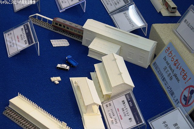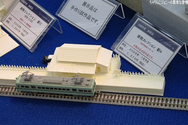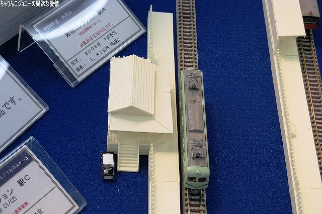 × [PR]上記の広告は3ヶ月以上新規記事投稿のないブログに表示されています。新しい記事を書く事で広告が消えます。 目玉の展示物は各メーカーが持ち込んだ大型レイアウト(模型列車の運転を行うジオラマ)。 こちらはNゲージのもの。 何時かはレイアウトを、出来れば長大編成が悠々と運転できるものを持ってみたいものですが… こちらはHOゲージのレイアウト。 (左)夜景のレイアウトを走行する名鉄8800系。 (中)「地下駅」にはJR西日本のキハ120が停車中…煙たそうやな~ (^。^;) (右)鉄道模型のジオラマの製作販売を行っているディディエフに展示してあった、余部鉄橋のジオラマ。こちらはし販売している品物です。 今度はローカル私鉄用の駅などが発売されるよう。 丁度車輌展示用を兼ねて駅及び車輌基地の小さなジオラマ製作を考えていた所だったので、ワタシにとってはタイムリーな展示でした。 駅A。古びた感じの小さな「田舎風」駅舎と、20m車2両分のホームがセットになったもの。 (左)駅B。こちらはやや近代的な「都会近郊風」駅舎と、20m車2両分のホームのセット。 このほか、延長/複線化用にホームのみのセットも発売予定だそう。 (右)駅C(手前)と電車庫A(奥)。 駅Cは貨物用ホームと農業倉庫のセット。電車庫Aは単線で20m級車両一両分と言う小さなもの。 今回のラインナップは、西武鉄道451系とその一畑電鉄及び三岐鉄道への譲渡車。南海1521形とその江南鉄道への譲渡車。大井川鉄道1000系…だそうです。 (写真は三岐鉄道600系の実車 89/10/01撮影) 運転台内の焚口戸部分を開口し、火室部分にLEDを仕込んで炎がついているように見せたもの。 ただ点灯しているのではなく、炎が揺らめいているかのように光が微妙に強弱する。(…って写真では伝わらないよね) …と言う事で見学終了(^。^) お目当てだった鉄コレ@イベント限定品(こちらはまた後日(^。^))等を購入し撤収しました。 PR