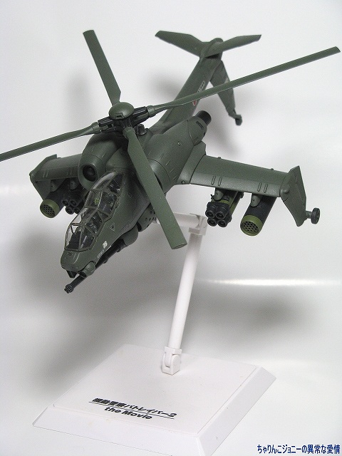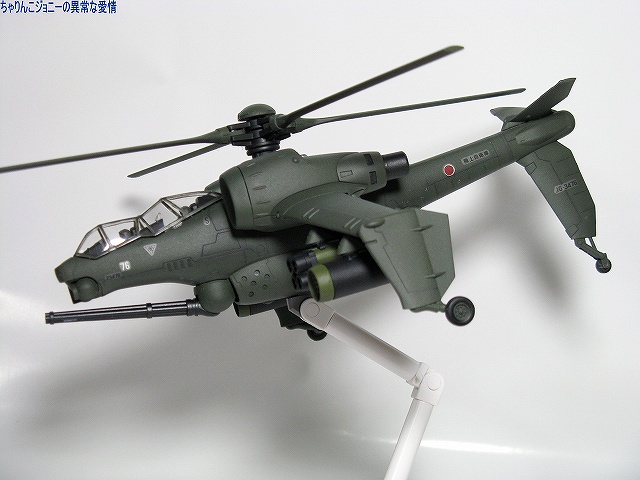 ・実機解説 武装は機首に4砲身20mm機関砲。下反角のついた大型の「主翼」にTOWII対戦車ミサイルとロケット弾ポッドを装備。 コンテナでの輸送を可能にする為、主翼及び回転翼の折り畳み機構を有している。 尾部にはテイルローターに替わり、新開発のカウンターノズルを装備している。 …と言う設定で、アニメ「機動警察パトレイバー2 the Movie」に登場した架空機。 キットでは柘植が「クーデター」に使用した米陸軍使用タイプの「AH-88 A2」を再現しているとの事。 ・模型解説/組み立て コクピットの後席(パイロットの席、前席は砲手…のはず)前には、ハセガワAH-1Sコブラのジャンクパーツ(後述)より、ヘッドアップディスプレイのパーツを追加して見ました。 胴体下部やエンジンナセル及び主翼端に付いている小翼(アンテナ?)は、取り付け角度を決めるのが難しそうなの キットには展示用に接地/収納状態用の台座及び飛行状態用のフライングベースが付属していますが、それらを使用せずに接地状態似て展示しようとすると前のめりに傾いてしまうので、尾部にオモリを仕込んで置く必要がありそうです。(ワタシはやってない) ・塗装/マーキング等 ガンダムマーカーのスミ入れ用を用いてスミ入れをして見ましたが、チョット失敗だったなー(^。^;) (結局は自分の好みで塗ったんですけどね) キット付属のデカールは劇中のものを忠実に再現しているのですが、 コトブキヤからはハンニバルが発売されると言う事で、こちらも楽しみ。 PR