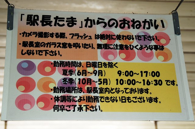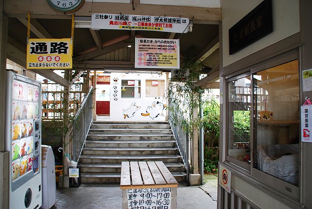 × [PR]上記の広告は3ヶ月以上新規記事投稿のないブログに表示されています。新しい記事を書く事で広告が消えます。 貴志川駅の猫駅長「たま」の母親で、貴志駅の助役を拝命していた猫の「ミーコ」が7月に死去していた旨、9/5付けで発表されていました。 ミーコ助役のご冥福をお祈りします。 貴志駅ではこんな話題も… ・猫駅長「たま」目当ての車も殺到 何のためのたま駅長かを理解し、伊太祈曽駅のパーク・アンド・ライド駐車場を利用すべし。 PR レポート第一回目は、貴志駅のスーパー駅長、たま卿の写真などです。 …と言う訳で、和歌山電鐵貴志川線の終点貴志駅。 (左)シンメトリーな木造駅舎の向って左側の売店にて飼われていた三毛猫「たま」が、「たまたま」「駅長」に就任した所、人気爆発でローカル線の貴志川線は乗客が10%増。 その貢献が認められ、たまは「スーパー駅長」へと昇進すると共に、和歌山県より「和歌山でナイト」の称号も貰っている。 (右)改札口の横にある、かつての出札窓口を改装して作られた「駅長室」がたま卿の仕事場。 (左)早速駅長室を覗いて見ると、案の定たま駅長とちび助役が爆睡中(^。^;) (中)チョットだけ顔を上げてくれた。 (右)駅長室に置かれていた駅長帽 (左・中)暫くして戻ってくると、ちび助役が台の上に上がっていた。 (右)たま駅長は相変わらず爆睡中(^。^) 次回からは例によって電車の写真です(^_^;) たま卿との接見時に於ける注意事項![]() 常識的なことばかりだと思いますが、以下が理解でき守れる人のみ行って欲しいと思います。 撮影時はストロボ厳禁ストレスになったり網膜を傷めたりするので、動物の撮影時はストロボはよくないです。 つか、ここの場合ガラス越しの撮影なので、ストロボを焚くとガラスに反射してメチャクチャな写真になります。 犬連れの見学厳禁犬は苦手だそうです。 駅長室のガラスを叩いたりしないその他、ストレスになるようなことはやめましょう。エサをあげたりもしないようにしましょう。 たま駅長は日曜日がお休みですその他、体調等によりお休みのときが有るそう。 訪問時は必ず和歌山電鐵利用で貴志川線存続のためのたま駅長ですので…一日フリーきっぷが便利です。 車で和歌山まできた人は和歌山駅前の駐車場や、伊太祈曽(いたきそ)駅のパーク・アンド・ライド駐車場を利用のこと。 ちなみに、グッズ類は伊太祈曽駅の出札窓口及び貴志駅の売店の他、ネット通販も有ります。 と、言う事で… ・たま駅長へ「ナイト」の称号を授与 和歌山の知名度が上がり観光客が増えた、として和歌山県が新たに創設した「和歌山県勲功爵」の称号を授与すると発表したもの。 授与式は28日の予定だそう。 ・「たま電車」のデザイン発表 和歌山電鐵では現在「たま電車」サポーターを募集中とのこと。 撮影が二次に渡っている理由は、1/3の訪問時は満足の行く写真が取れなかったことと、貴志川線グッズを購入しそびれた(行きに貴志川線和歌山駅ホーム似てグッズが売られていたので、帰りに買って帰ろうと思い、夕方戻ってみると臨時売店は撤収されていたと言う…(^。^;))ため「二次攻撃ノ要アリ」と判断し、どうせ行くなら18きっぷが残っているうちに…考えたからです。 そんな訳で、両日撮影した写真を一纏めにしてご紹介します。 |