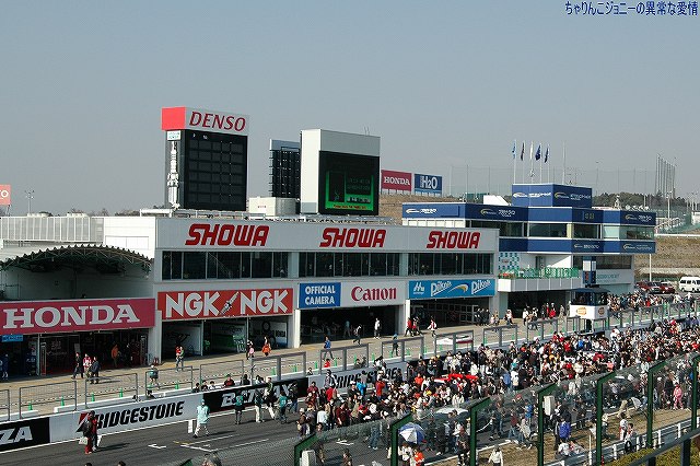 × [PR]上記の広告は3ヶ月以上新規記事投稿のないブログに表示されています。新しい記事を書く事で広告が消えます。 多くのお客さんがこれ目当てだったと思われるスーパーGT仕様の新型ニッサンGT-R。 「本家」であるNISMOの23号車がデモランを実施した。 ワタシのお目当てはビンテージF-1のデモラン。 (左)ミナルディー・ランボルギーニM192 (右)ウィリアムズ・ホンダFW11 …の2台がデモランを実施した。 ただし、イベントの最後にホームストレート上にて展示された。 この車は、鈴木亜久里選手が90年F1日本GPにて三位表彰台に上がった時のものだそう。 …詳しくはまたそのうち。(^。^) ・鈴鹿サーキット 2009年のF-1再開に向けた施設の改修計画を発表 ①観戦・イベントエリアの快適性向上 ②パドック・ピットエリアの利便性・快適性向上 ③レーシングコースの更なる安全性向上 …を掲げ、2009年春の完成を目ざし各種工事を実施する計画で、報道によれば200億円を投じるそう。 工事が完成すれば、ホームスレートを挟んで建つコントロールタワー/ピット及びグランドスタンド(の既存部分)が大幅に改修または新規に作り直され、風景は一変するはず。 ※この写真2枚は昨年撮影したものです。 昨日の段階で既に工事の一部は始まっていた。 (左)パドック拡張のため、ダンロップコーナー最終コーナー間のインフィールドに有った池の埋め立て工事が進んでいた。 (右)グランプリスクエア(グランドスタンド裏のイベントスペース)拡充のため、ジェットコースターなど一部施設が解体されていた。 本投稿及び添付した写真は私ちゃりんこジョニーの著作物であり、他のサイト・掲示板及びブログ等への無断転載を禁じる。 特に、悪質パクりブログ「中華人民共和国萬歳」改め「JMSDF rie」を運営していた、支那人窃盗常習犯sunbinsiftに対しては強く抗議する。 PR