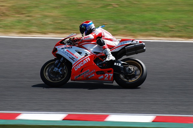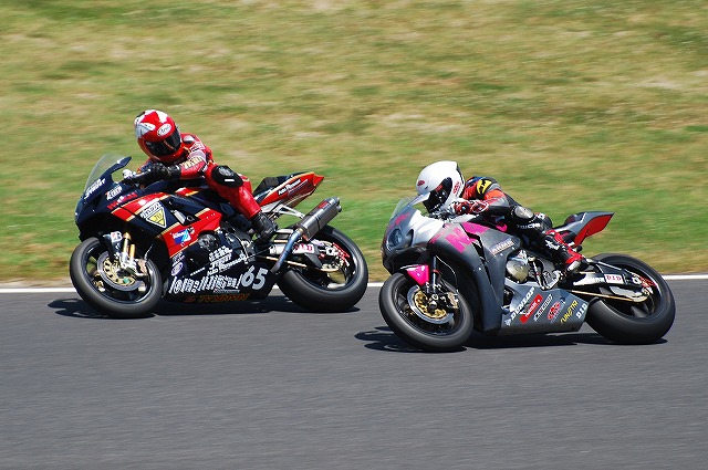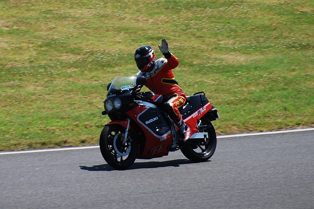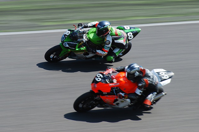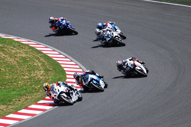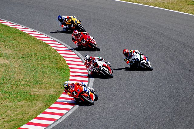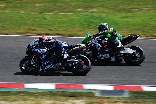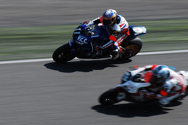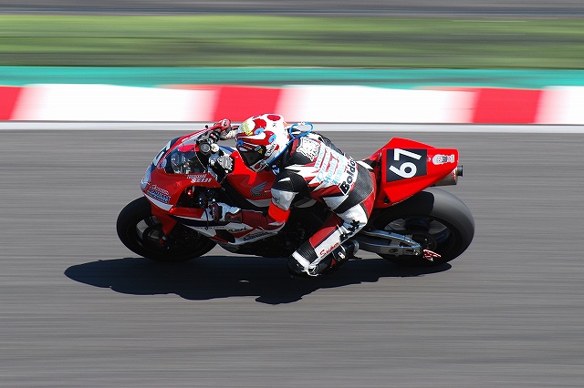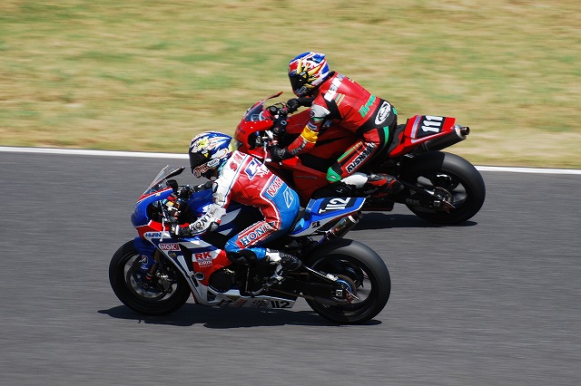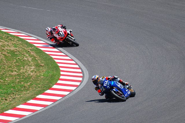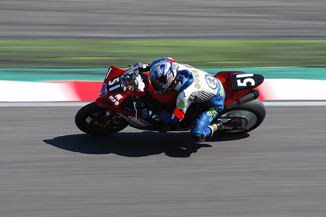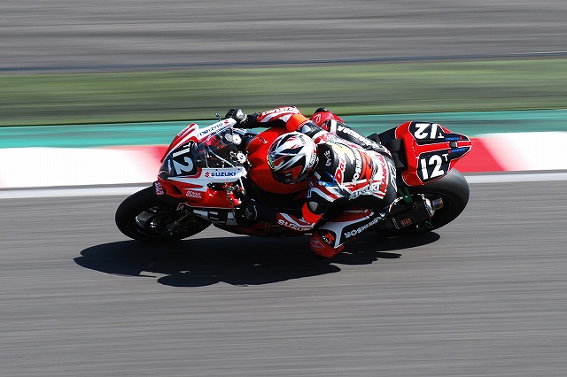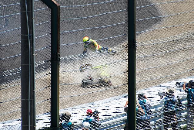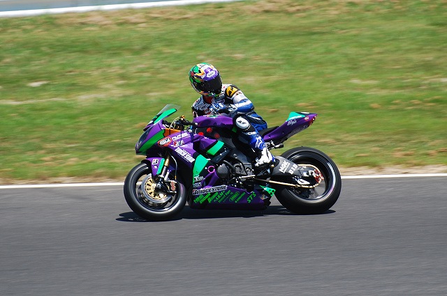 × [PR]上記の広告は3ヶ月以上新規記事投稿のないブログに表示されています。新しい記事を書く事で広告が消えます。 気が付けば9月になり、当日の真夏の暑さが懐かしく…とも何とも無く、未だに気温的には大差無いって、ど~ゆ~事よ?!(^。^;) 写真はイベントスペースに展示されていたホンダNSR500。(1984年) カウルを外した状態で展示されていたので、低重心化のために通常のバイクとは逆に燃料タンクを車体下部に、マフラーを車体上部へ持って来ているのが分かる。 (左・中)2コーナーのスタンドへ移動し、フリー走行(の後半)から撮影。 (右)スタート前のアトラクションでデモ走行を披露したグレアム・クロスビーさん。 スタート(左)序盤に先頭に立ったのは#12ヨシムラ・スズキ (左)2コーナーで一台転倒 (右)直後にヨシムラをかわし#11TSRホンダがトップに立ったが、そのオーバーテイクは先の転倒による黄旗(追い越し禁止)区間だった為、ピットストップのペナルティを受けてしまう。 #11は別の黄旗区間でも周回遅れを追い越しており、一回目のライター交代後に2度のペナルティを消化、追い上げにかかろうとした矢先に今度は自身が転倒を喫してしまい、優勝争いからは大きく遅れをとってしまう。 (中)#01今年はエヴァンゲリオンレーシングとして参戦のトリックスターレーシング(カワサキ)。 昨年は2位表彰台を獲得したが、今年は 逆バンク出口付近のスタンドへ移動して撮影 130Rのスタンドへ移動して流し撮りに挑戦 つづく PR