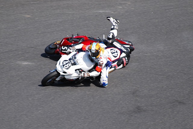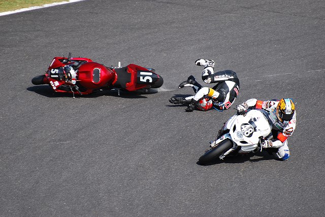 (左)#135はBMW。 今年はドゥカティ2台、アプリリアとBMWが各1台と、近年では「外車勢」の参加が比較的多かった。 (左・中)直前に転倒を喫した#12ヨシムラは砂まみれ&キズだらけの状態。 他にも何度か転倒を喫したヨシムラは、徐々に順位を落としてしまう。 (右)#01カワサキ製エヴァ初号機もどこかで転倒したらしく (左・中)#48と#51が接触し#51が転倒。 幸いな事に、オフィシャルの手を借りつつすぐに再スタートしていました。 (右)中盤でトップに立った#634ハルクプロ(ホンダ)。 夕方が近付き、一部車両がヘッドライトを点灯し始める。 薄暮の時間帯(左)#01エヴァ初号機の 8時間経過 ゴール後のパレード(左)表彰式(の途中から)解放されたホームストレートに下りて見学。 優勝したのは#634ハルクプロ(ホンダ)。同チームは初優勝とのこと。 (右)フィナーレは恒例の花火。 それと、8耐のオンラインアルバムもUPしましたので、宜しければ御覧ください。 最後になりましたが、当日お世話になった皆様有り難うございました。 PR