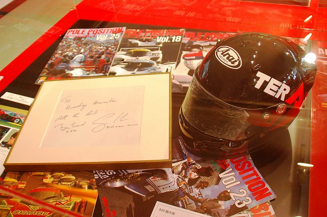 × [PR]上記の広告は3ヶ月以上新規記事投稿のないブログに表示されています。新しい記事を書く事で広告が消えます。 会場ではル・マン24時間耐久レースに参戦した3台の日本車が展示されており、係りの方に「写真撮らせてもらって良いですか?」とお尋ねした所「どうぞお撮りください」とのことでしたので、撮影させてもらった写真をご紹介します。 童夢RL81 (右)直線的なデザインとボディー埋もれたような低いコクピットが印象的なこのマシンは、1981年の参戦マシンで、エンジンはフォードコスワース。 (中)オープントップ仕様と言う事で、コクピットの前面ガラスは無い…だけど屋根は有る。 (右)ドライバーはクリス・クラフトとボブ・エバンス。残念ながら決勝はリタイヤに終っているそう。 マツダ787B![]() エンジンは654cc×4ローターのR26B。レギュレーションの変更により、ロータリーエンジンでの参戦はこの年が最後のチャンスであった。 (左)784Bは会場正面に展示されており、背後の大型スクリーンでは91年のル・マンの映像などを放映中。 (中)リアウイングが比較的低い位置にあるのはレギュレーションの影響かな? (右)リアウイング翼端板に入れられたマツダのロゴと、(暗くて見難いけど)車体後部に入れられたマツダスピードのロゴ。 (左)サイド部分のロゴ。タイヤはダンロップ製。 (中)フォルカー・バイドラー/ジョニー・ハーバート/ベルトラン・ガショーの三選手は、マツダ787Bを24時間で362周=4923.2km走行させ優勝に導いた。 (右)フロント部分のロゴ。 トヨタTS020![]() (左)1999年の参戦マシン。 空力的に洗練された低いシルエットのボティに、比較的飛び出した感じのコクピット…という、グループCカテゴリー消滅後の今時なクローズドボディのプロトタイプカー。 NA(自然吸気)エンジン搭載のため、ルーフ上にエアインテイクが有る。 (中)参戦チームのTTE(トヨタ・チーム・ヨーロッパ)はル・マン参戦以前はWRC(世界ラリー選手権)に参戦、ル・マン参戦終了後はTMG(Toyota Motorsport GmbH トヨタ モータースポーツ有限会社)としてF1へと転進しており、その際にはこのTS020もF1参戦へ向けての基礎データ収集に使用された。 (右)99年の#3は、片山右京/鈴木利夫/土屋圭市の日本人三選手によるドライブにて2位入賞を果たしている。 ドライバー名の上下に貼られている車検証のようなものは、近年のヒストリックカーレースに参戦した時のものかな? 日本人ドライバーのヘルメット等も展示されていた。 (左)「日本のミスター ル・マン」寺田陽次郎選手のヘルメット等。 敷かれている「ポールポジション」と言う雑誌は、当時のマツダのレース広報誌。 (右)片山右京選手のヘルメットとレーシングスーツ。 当日お世話になった皆様有難う御座いました。 BS/CSと多チャンネル時代を迎えている今、我々は今年もル・マンの中継を見ることが出来なかった。 寒い時代だと思わんか…? …って、最後はワッケイン指令かよ!(^。^;) PR
