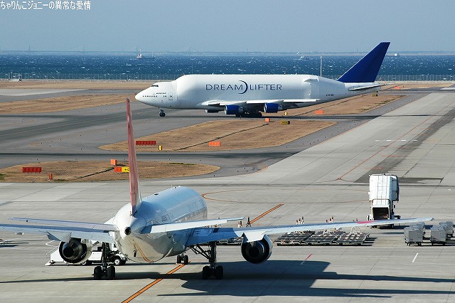 フィンランド航空のエアバスA340。 定期便として飛来しているようだが、ワタシは始めて撮影(^。^) 新塗装の機体は始めて撮影。 キャセイパシフィックのエアバスA350。 (右)後部胴体には香港返還10周年のマークが貼られていた。 全日空のボーイングB777。 全日空機の胴体前部のロゴは「ANA」と記した機体が多数派を占めており。写真のような旧来の「全日空 All Nippon Airwats」ロゴの機体は少なくなりつつある。 日本航空のボーイングB747。 …別にどぉって事無い出発風景に見えるのだが、何故かスポットアウト時に横断幕を手にした職員の皆さんが見送っていた。理由は不明。 767の後部胴体には「ようこそJAPAN」のロゴが見られる。 Nナンバー(米国登録)のビジネスジェット…と言うかガルフV2題。 (左)ただでさえ同型機な上に塗装も微妙に似ているので、一瞬空自のU-4かと思ったよ(^。^;) (右)レジ番から推測するに、トヨタの社有機かな? 今度は警察ヘリ2題。 ILS(着陸進入に用いる計器)のチェックに飛来したよう。 (左)愛知県警のベル412。 (右)警視庁のユーロコプターEC101。先日岐阜基地で撮影した機体で、引き続き川重にて整備中だったよう。 全日空のB767。 後日、全日空は中部空港よりの貨物便運行を、3/30にて取りやめるとの発表をした。 輸送量が伸び悩んでいるのと、かねてより同社が2本目の滑走路が完成し完全24時間運行が可能となった関西空港へ貨物便を集約する方針だったためだそう。 (左)シンガポール航空のB747。 (右)エーバーグリーン航空のB747。 当日現地への到着時に、エプロン北端の貨物機エリアに同機が駐機しているのが見えたので、撮影されていた常連のファンの方にお話を伺うと、前日飛来し何時もどうりなら12:00過ぎ~14:00頃に離陸するのではないか?とのこと。 ならば、と待つ事暫し。予定が遅れたのか今回は15:30頃に動き出した。 LCFは「Large Cargo Freighter」の略で、ボーイング日本や欧州など世界各地で生産されたB-787用の部品を、ボーイングの工場があるシアトルまで輸送するために、B747-400を改造し3機が作られたそう。 セントレアへは名古屋市港区に所在する三菱の工場にて製造された主翼の部品を輸送するために飛来している。(セントレアまでは艀にて輸送) (右)貨物の積み込みは後部胴体を折り曲げて行うらしく、胴体が絞られている辺りにそのヒンジが見られる。 胴体に書かれた「DREAM LIFTER」の愛称は、B787の愛称「ドリームライナー」に由来していると思われる。 最後になりましたが、当日現地にてお世話になった皆さん有り難うございました。 PR ![]() ![]() |