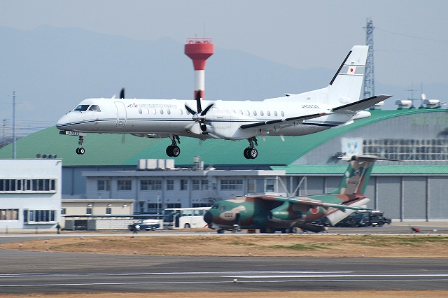 ・国土交通省航空局の飛行点検機 飛行場設備の点検に各地の空港を巡回している機体。 (右)灯火類のチェックのため、滑走路上を低空飛行中。 (左)当日の滑走路の使用方向はランウェイ34(≒北向き)だったが、ランウェイ16(≒南向き)方向に「逆走」してのチェックも実施された。 (右)検査を終え着陸したところ。 余談だが使用器材のサーブ2000は販売不振のため生産が中止されてしまっており(サーブ自体が旅客機試乗から撤退)、目下製造されているこのクラスのローカル線用プロペラ旅客機は、 ・ヘリ色々… 整備等を行っていたらしい各地の防災ヘリ@川崎BK-117 (左)大分県の防災ヘリ「とよかぜ」。 コクピット付近の胴体下面にスピーカを装備している。 登録番号はJA01TAは「OITA」の語呂合わせのよう。 (中)長崎県の防災ヘリ「ながさき」。 スキッドし展張式のフロートを装備している。 (右)福井県の防災ヘリ「BLUE ARROW」。 胴体側面にはホイストを装備している。機首にはレーダーを装備? 登録番号JA291Fは「ふくい」の語呂合わせのよう。 山形県警のアグスタA109「がっさん」 ホバリングのテストの後フライトも実施したが、頭上を通過した為良い写真が撮れなかったので、ホバリングの写真のみでご勘弁。(^。^;) アエロスパシアルAS332L1シュペルピューマ (左)四国航空保有機 (右)中日本航空保有機 ・J-AIRの旅客機 セントレア開港後の小牧(県営名古屋空港)に於いて、唯一定期旅客便を運行しているのがJ-AIR。 (左)従来より使用されているボンバルディアCRJ200。 (中・右)昨年末より新たに導入が始まったエンブラエルE170。 2月より定期便に就航しているが、その合間にタッチアンドゴー等の訓練飛行にも使用されていた。 2/12の撮影レポートは以上です。 撮影したかった受油ブーム付きのUH-60Jの他、航空局のフライトチェッカー機等も撮影できて、収穫の多い一日でした。 最後になりましたが、当日現地にてお世話になった皆さん有り難うございました。 本投稿及び添付した写真は私ちゃりんこジョニーの著作物であり、他のサイト・掲示板及びブログ等への無断転載を禁じる。 特に、かつては「中華人民共和国萬歳」現在は「異常な愛情」と言う名のパクりブログを運営している、支那人窃盗常習犯sunbinsiftに対しては強く抗議する。